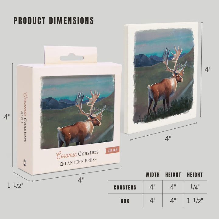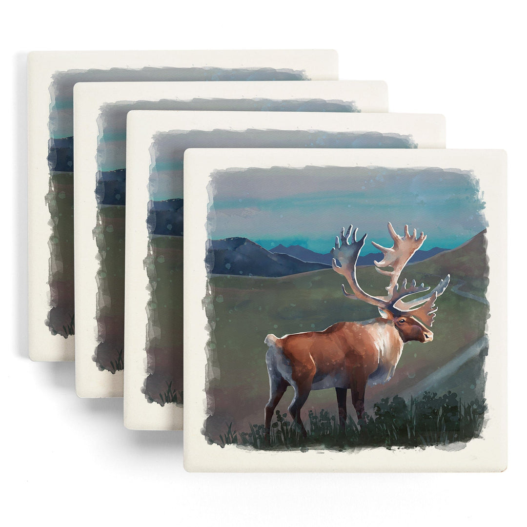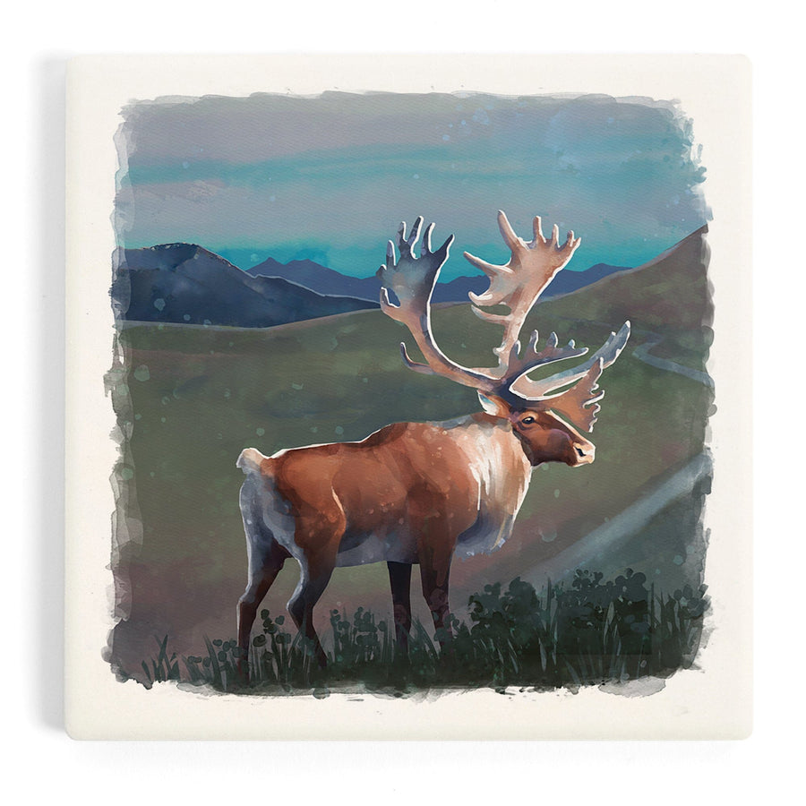 Watercolor Study, Caribou, Coasters Coasters Lantern Press