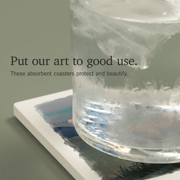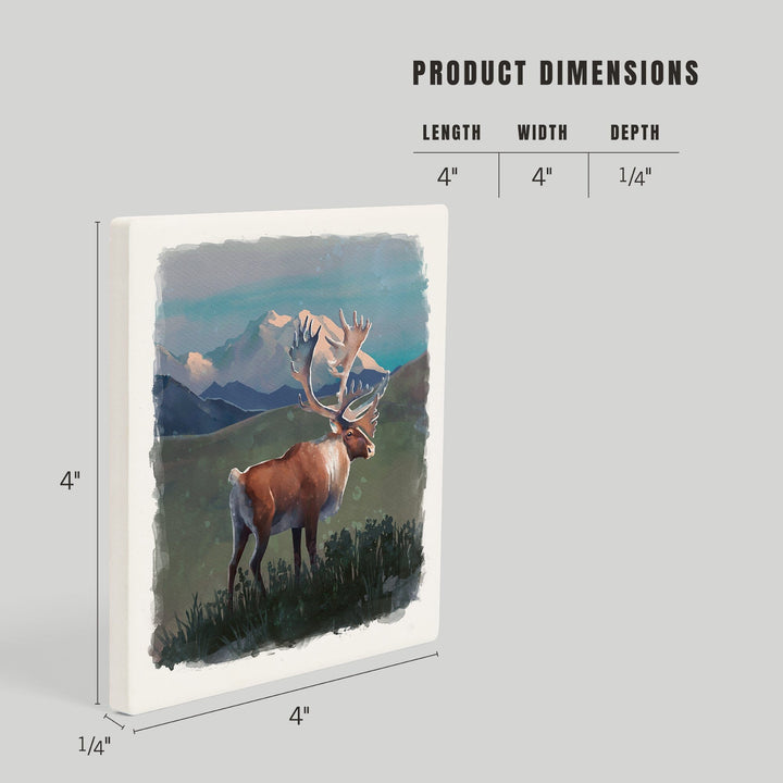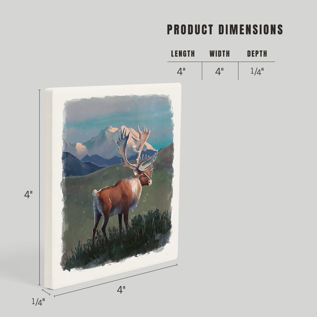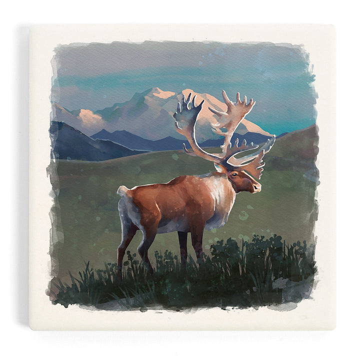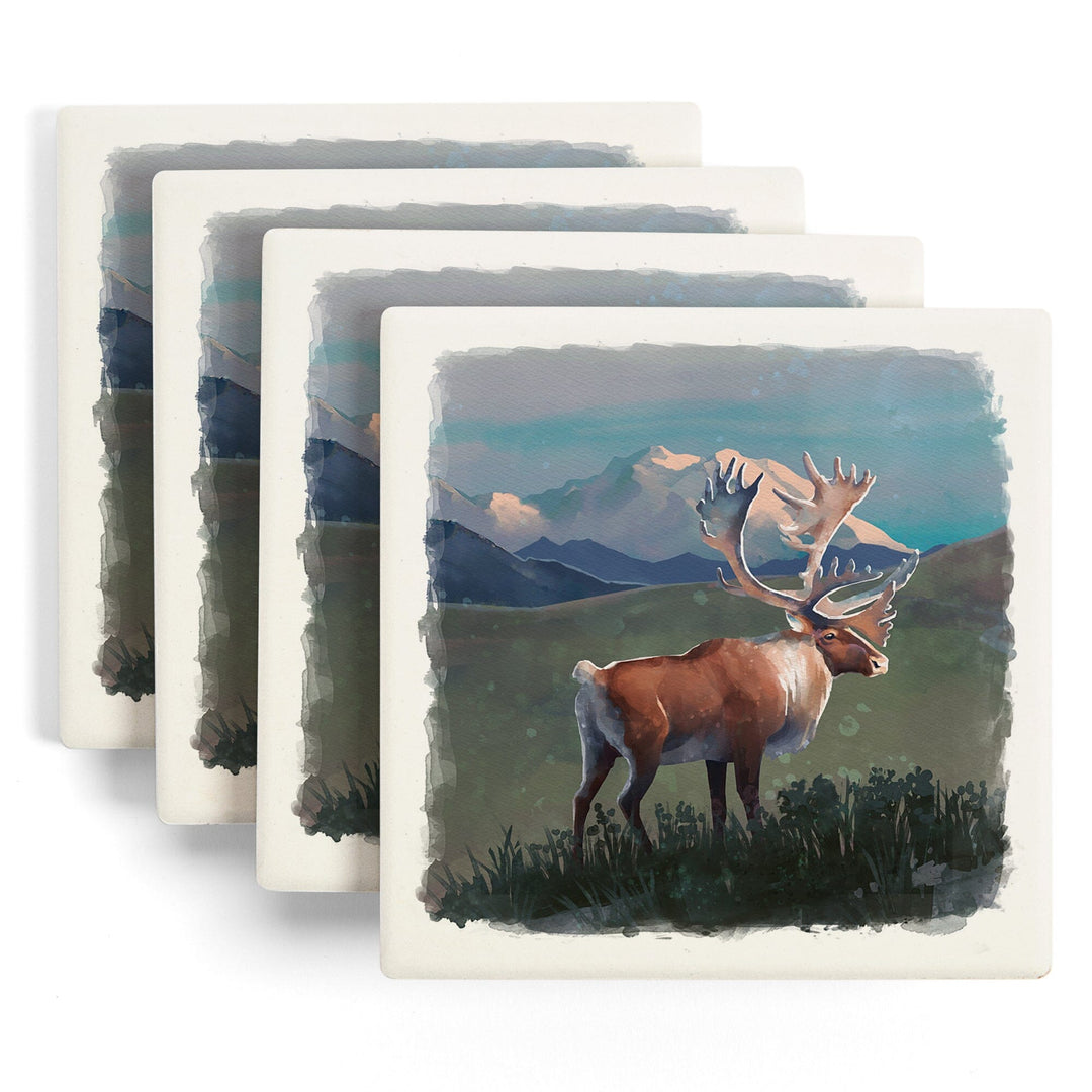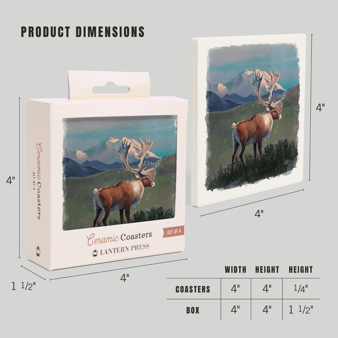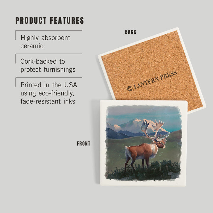Watercolor Study, Caribou with Mountain, Coasters Coasters Lantern Press