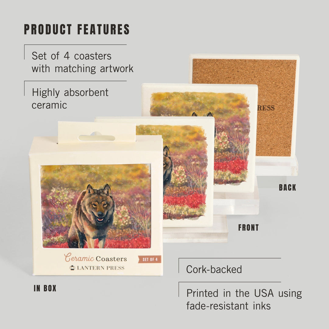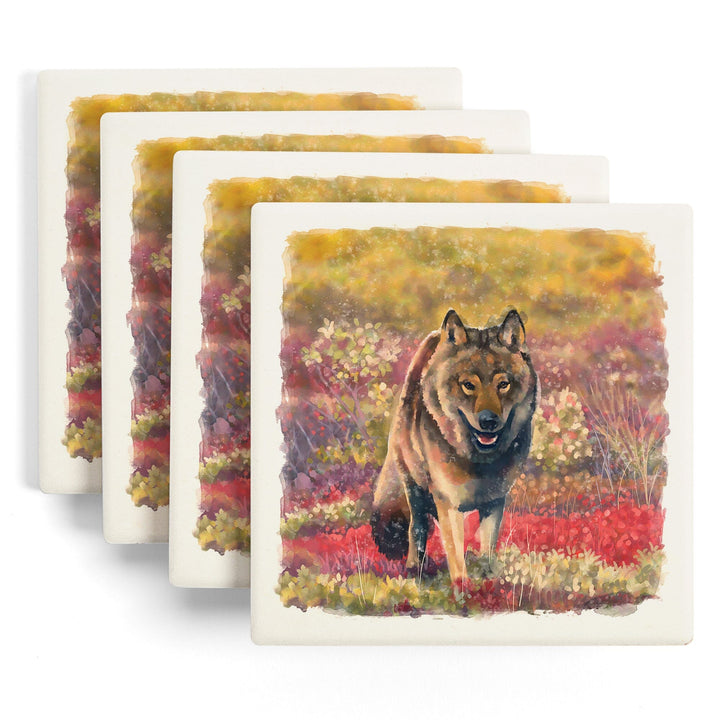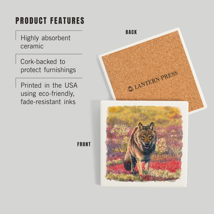 Watercolor Study, Gray Wolf, Coasters Coasters Lantern Press