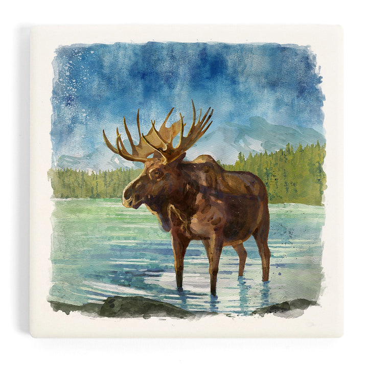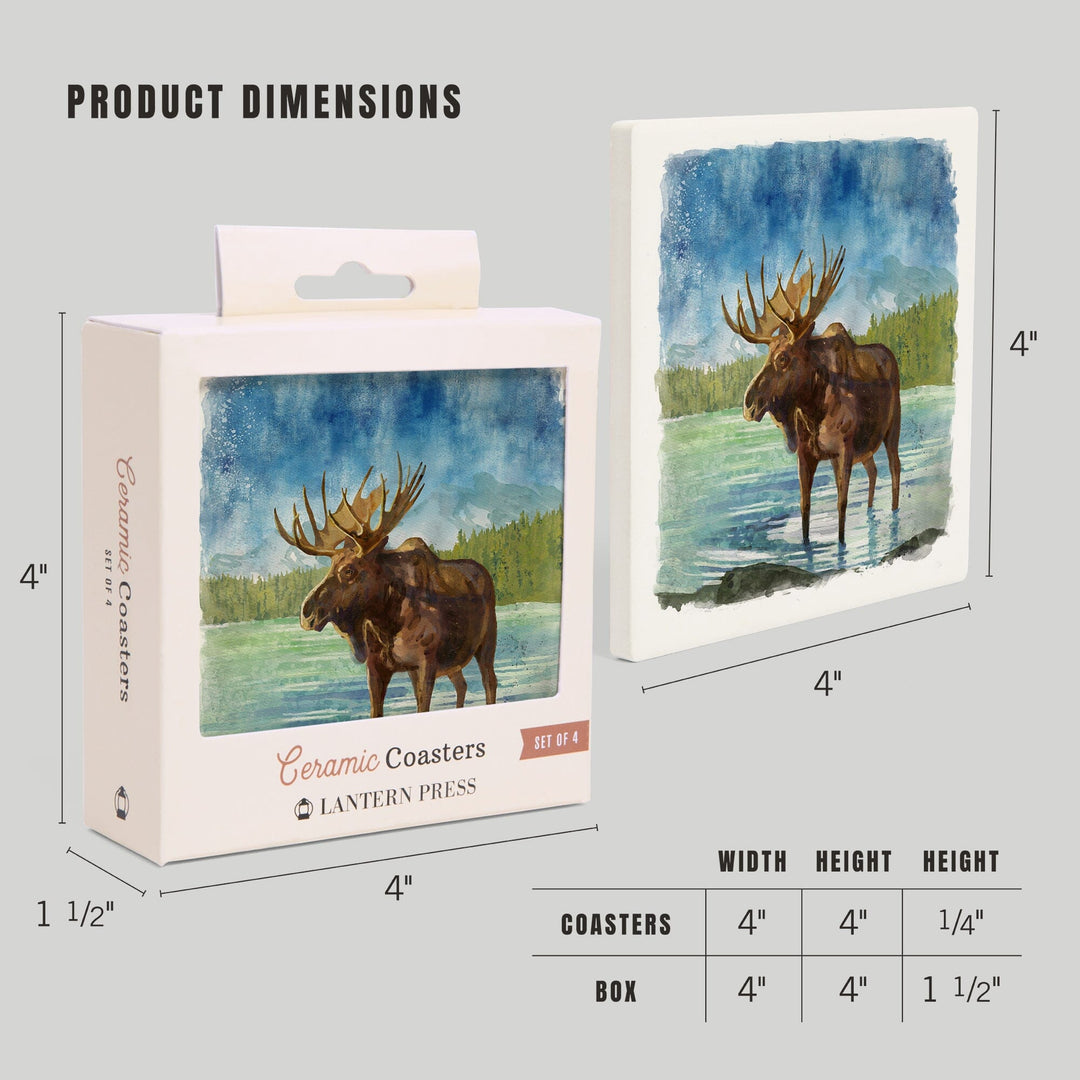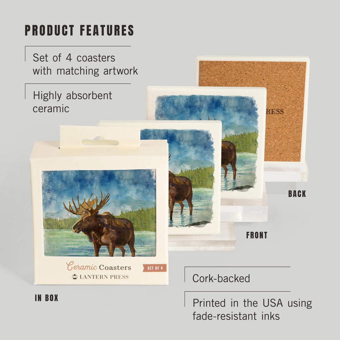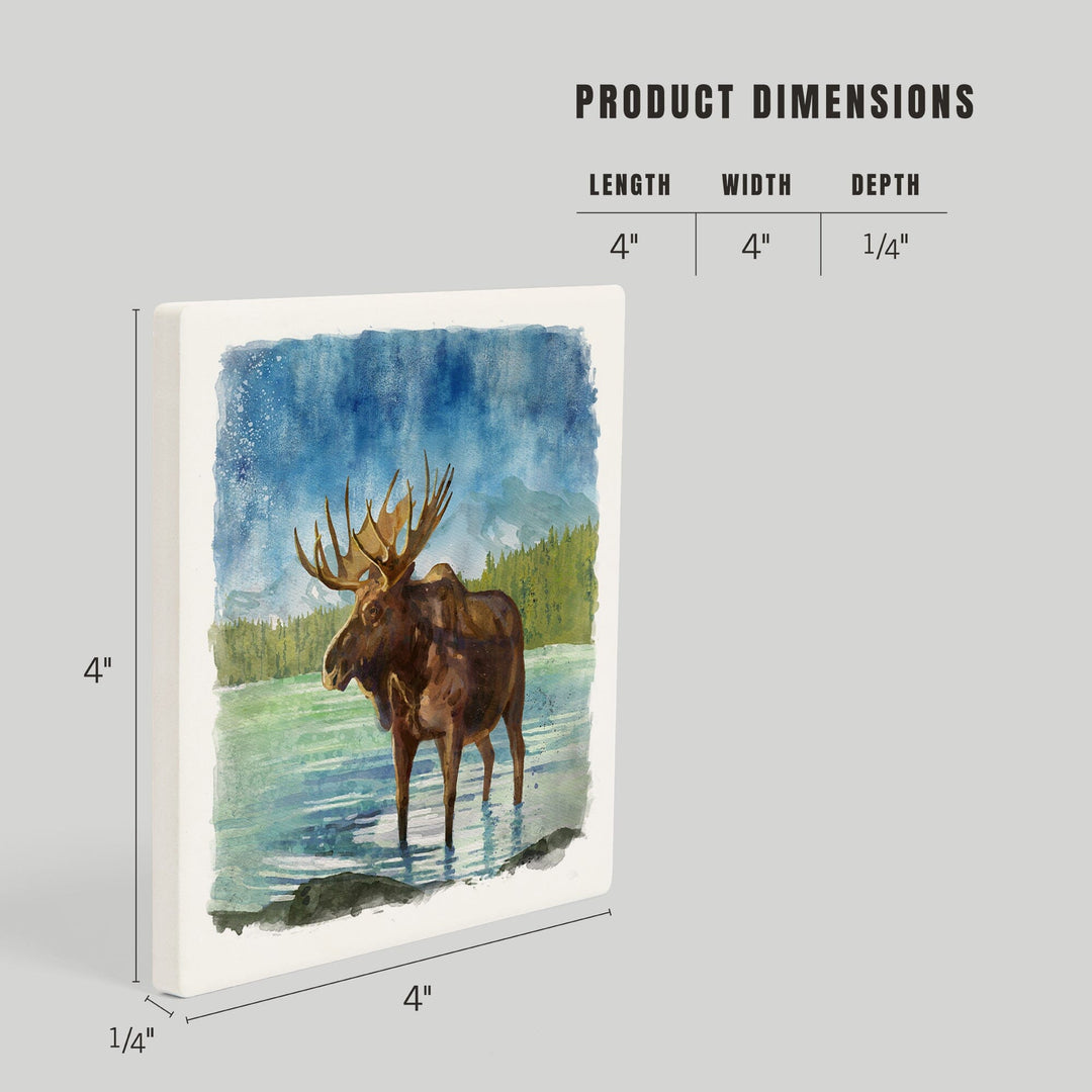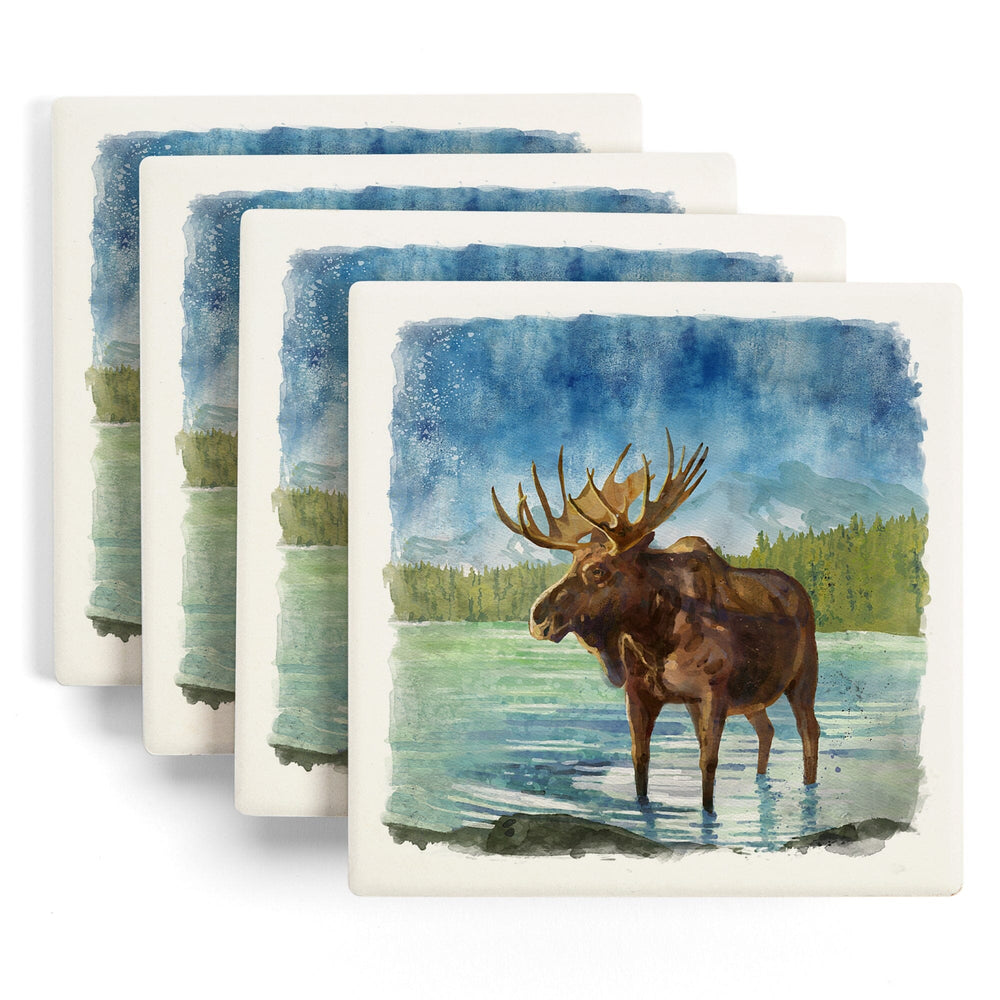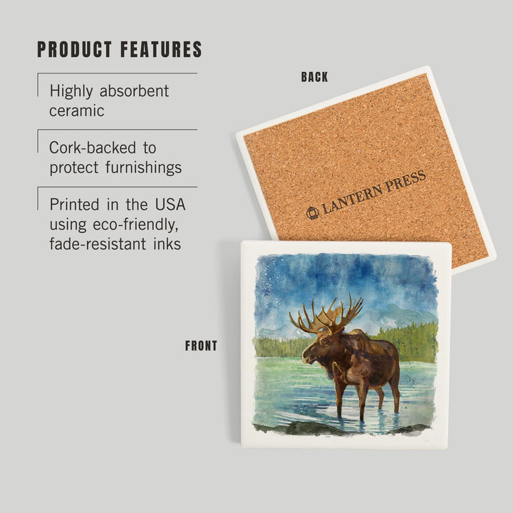 Watercolor Study, Moose with Mountain, Coasters Coasters Lantern Press
