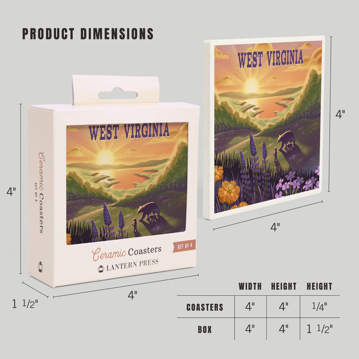 West Virginia, Lithograph, Bear and Spring Flowers, Lake, Coasters Coasters Lantern Press