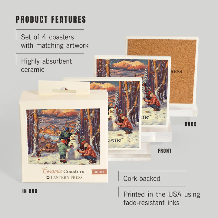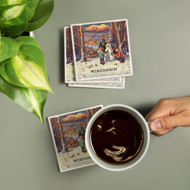Wisconsin, Merry and Bright, Vintage Snowman, Coasters Coasters Lantern Press