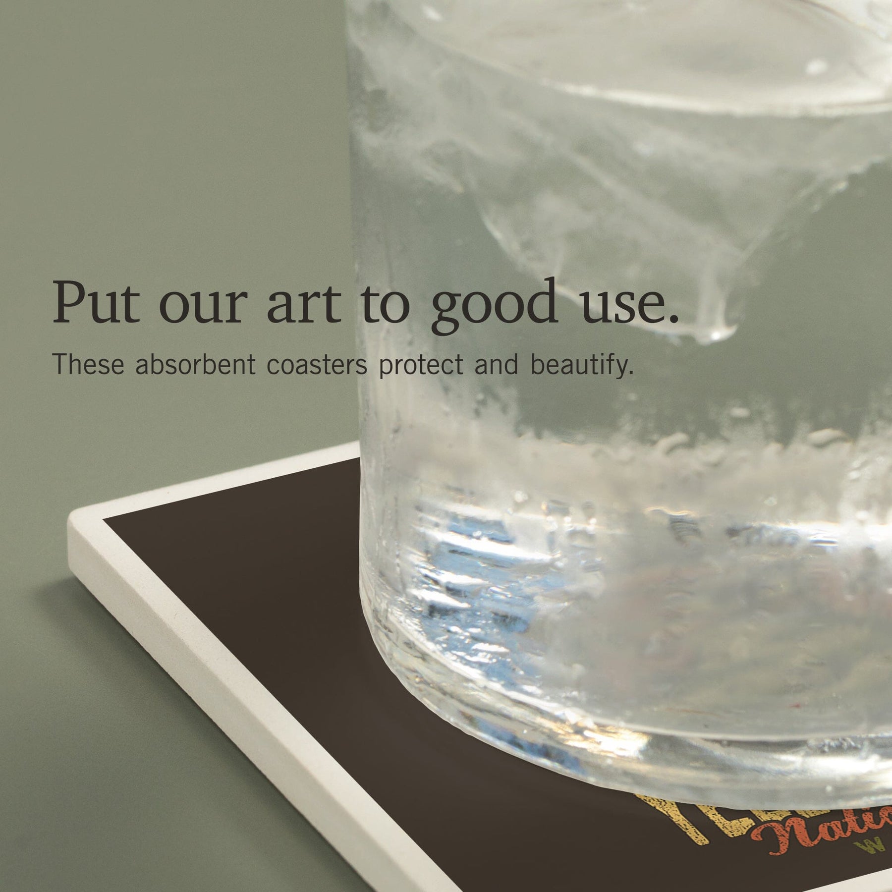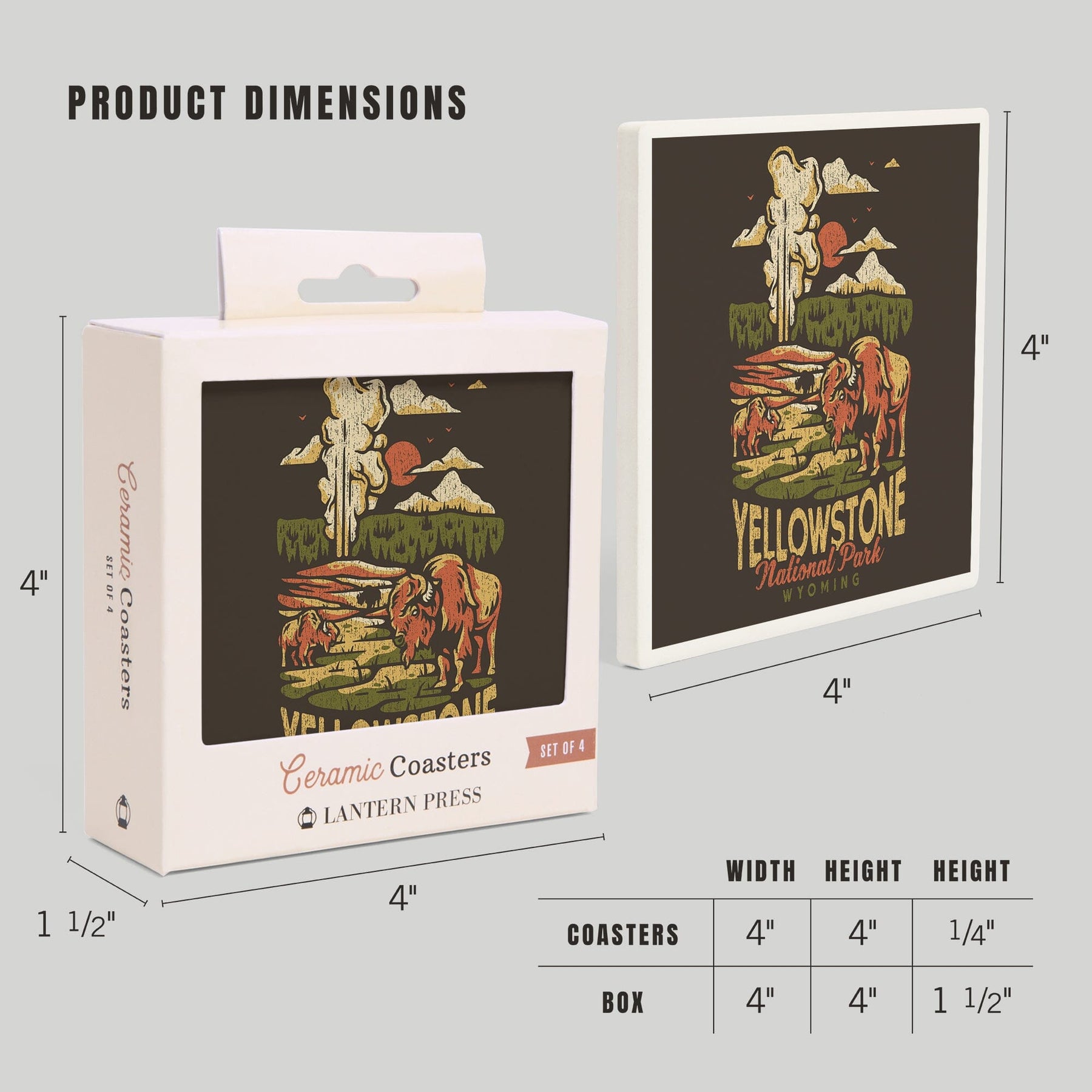 Yellowstone National Park, Wyoming, Distressed Mountain Scene, Coasters Coasters Lantern Press