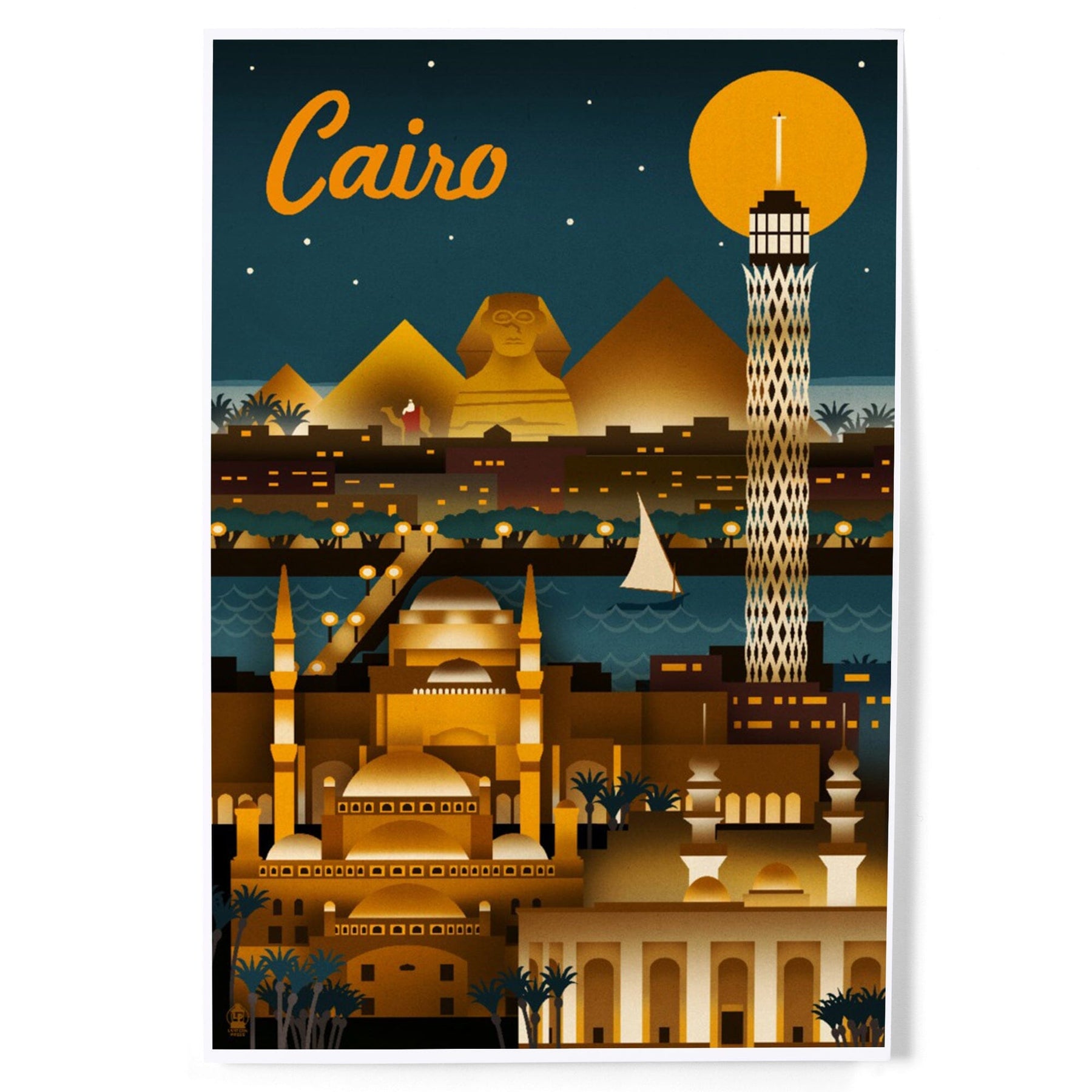 Cairo, Egypt, Retro Skyline, Art & Giclee Prints - Lantern Press