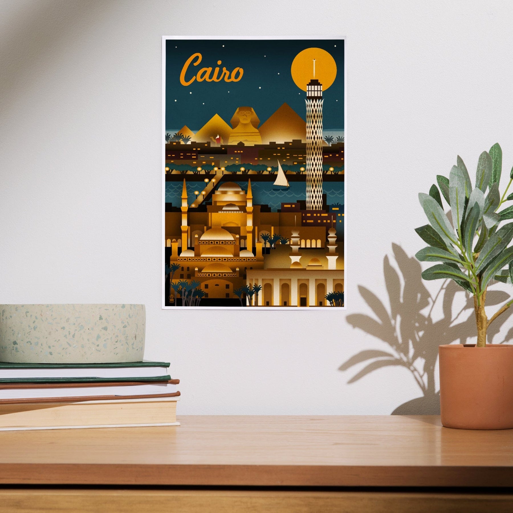 Cairo, Egypt, Retro Skyline, Art & Giclee Prints