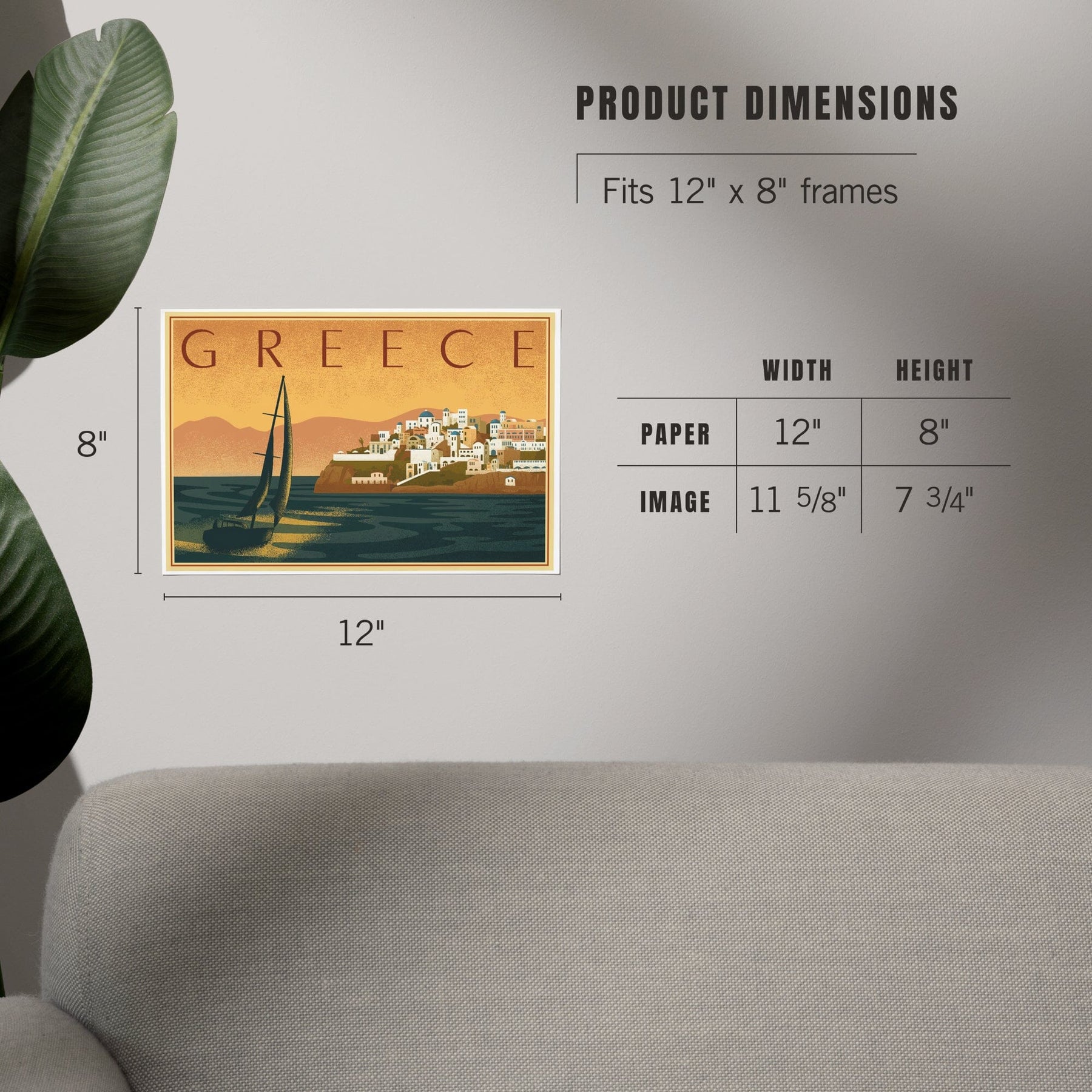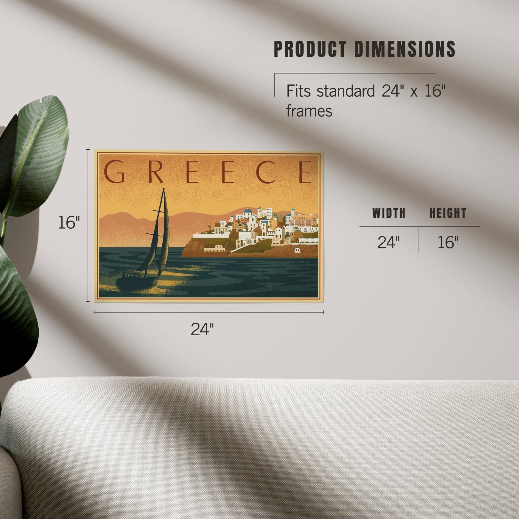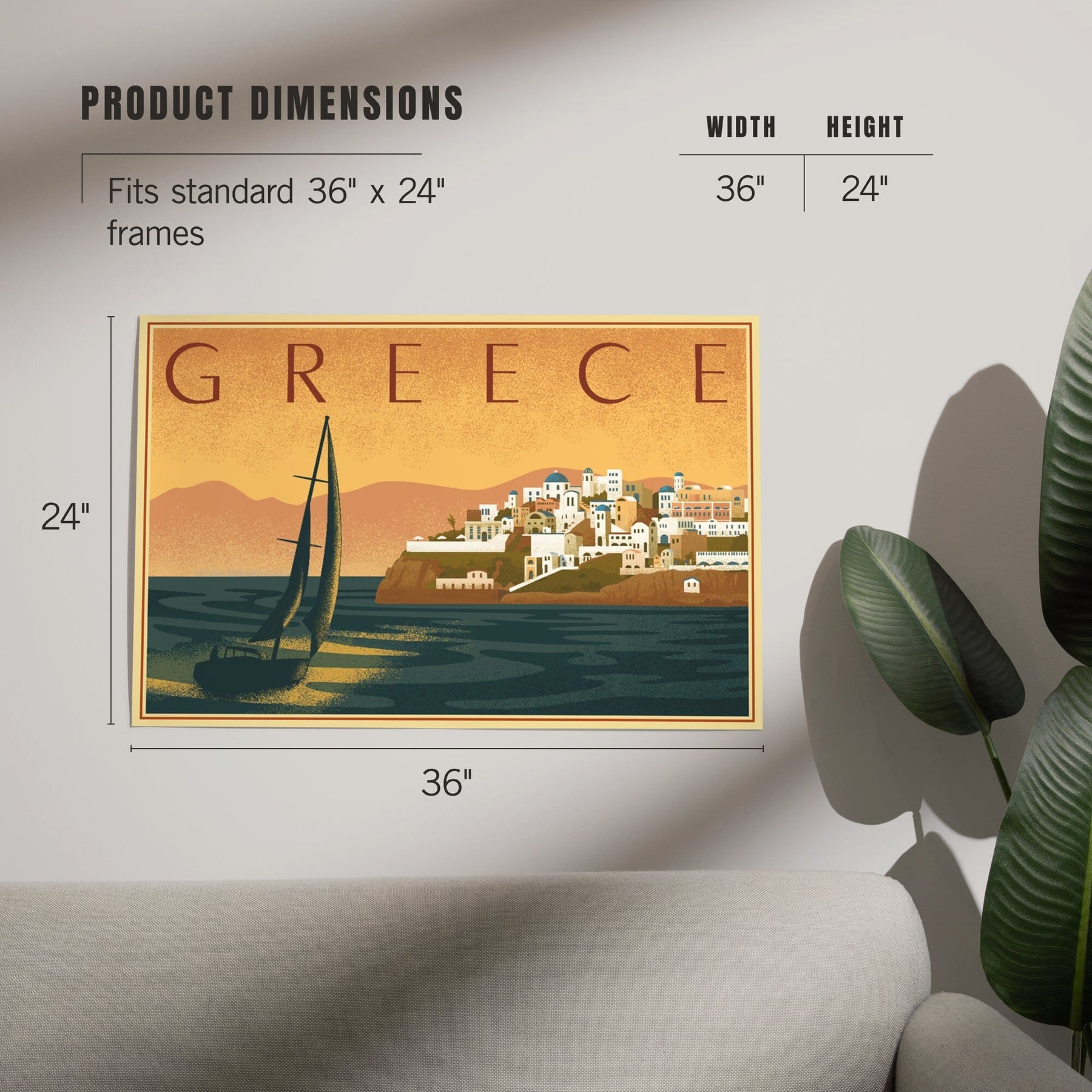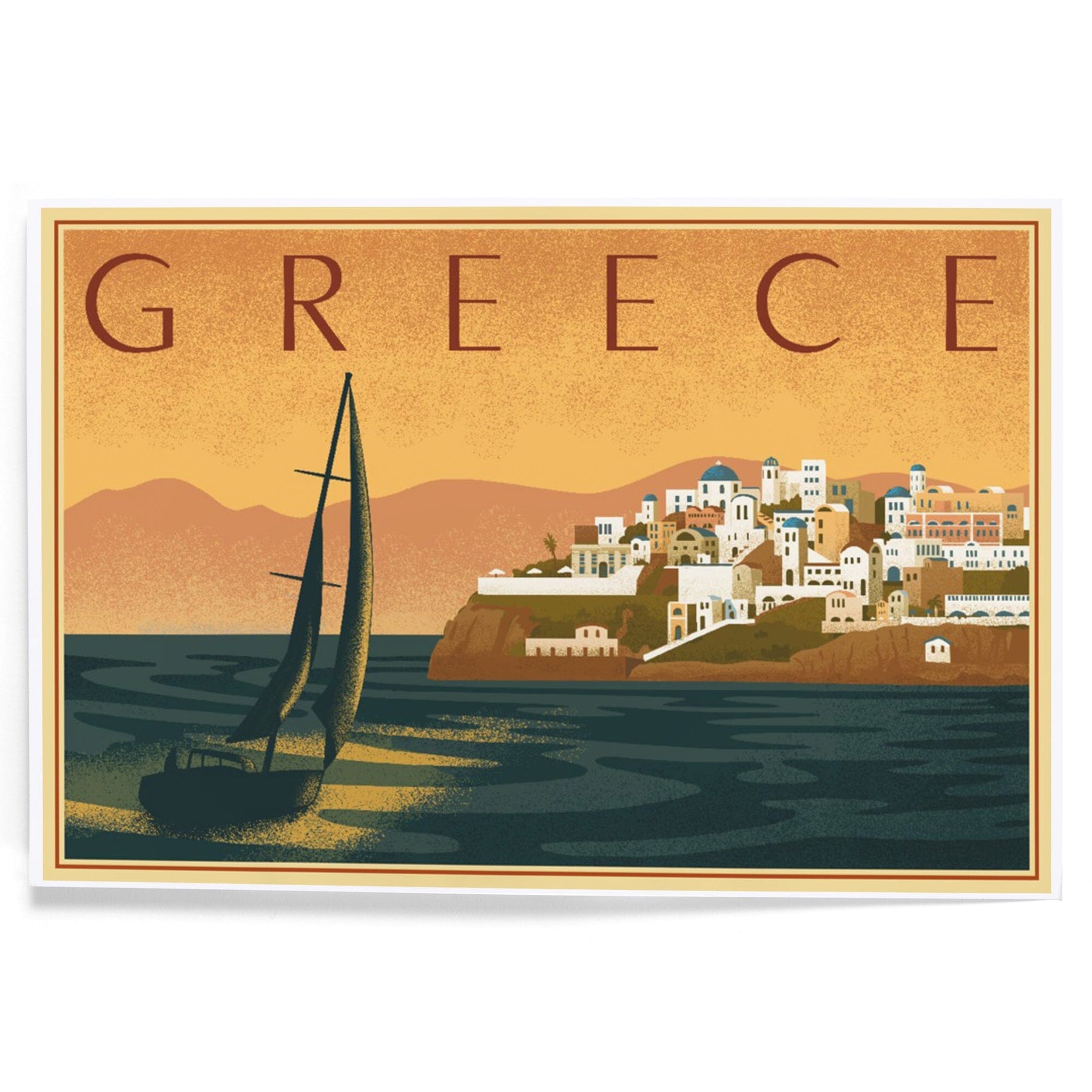 Greece, City with Sailboat, Lithograph, Art & Giclee Prints - Lantern Press