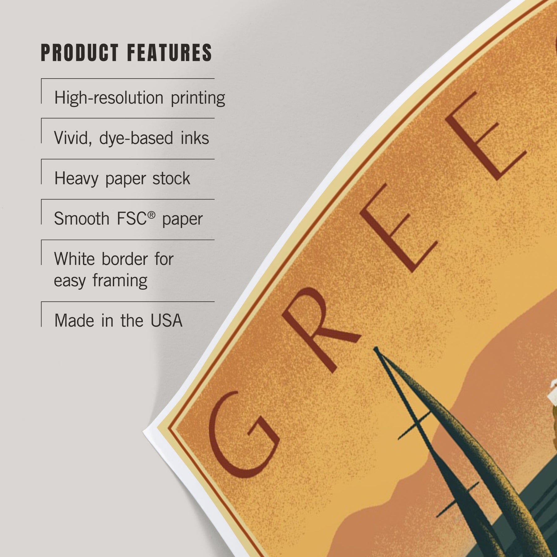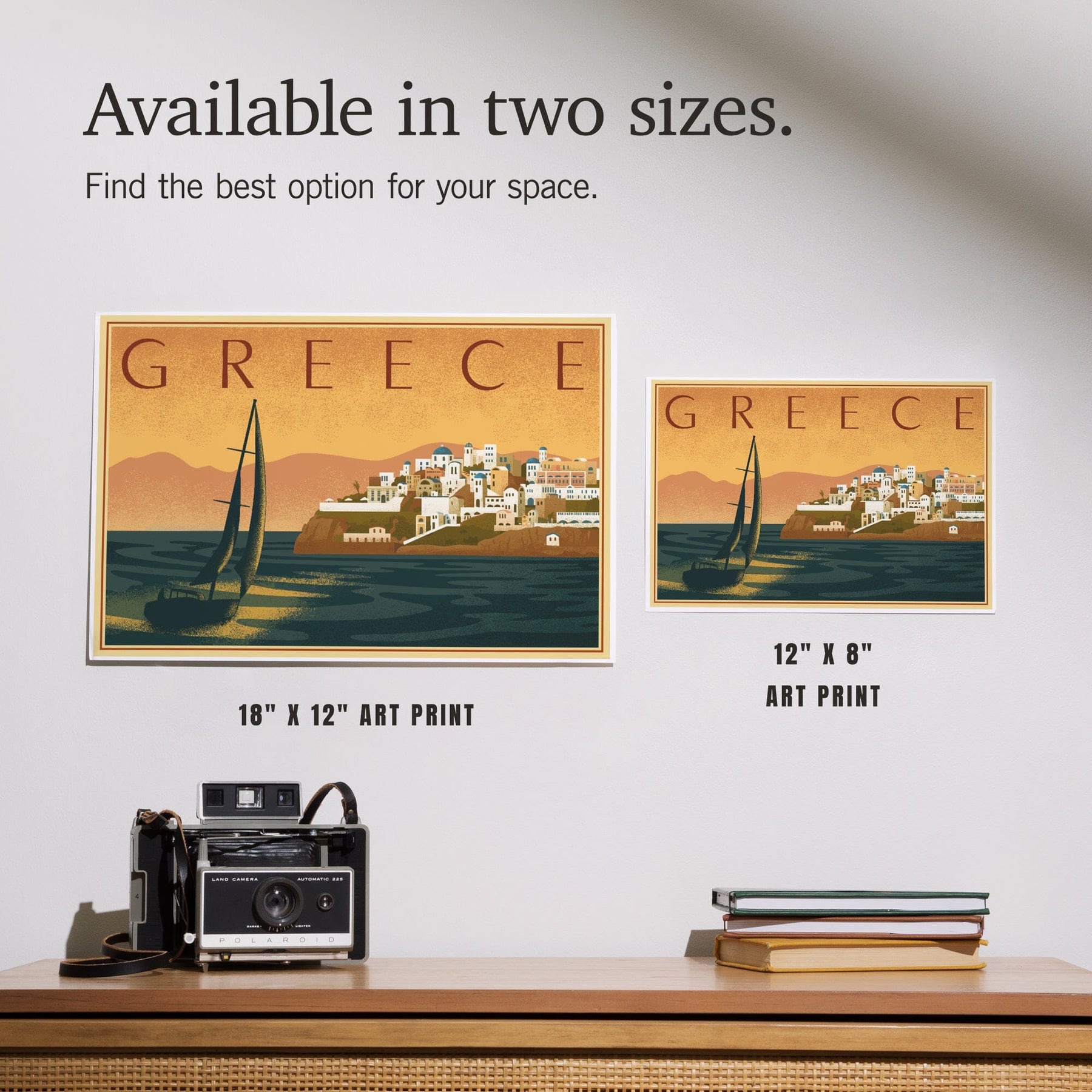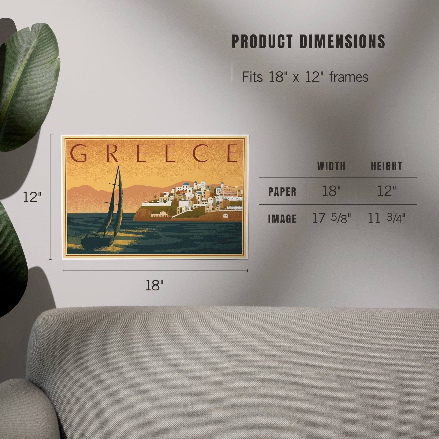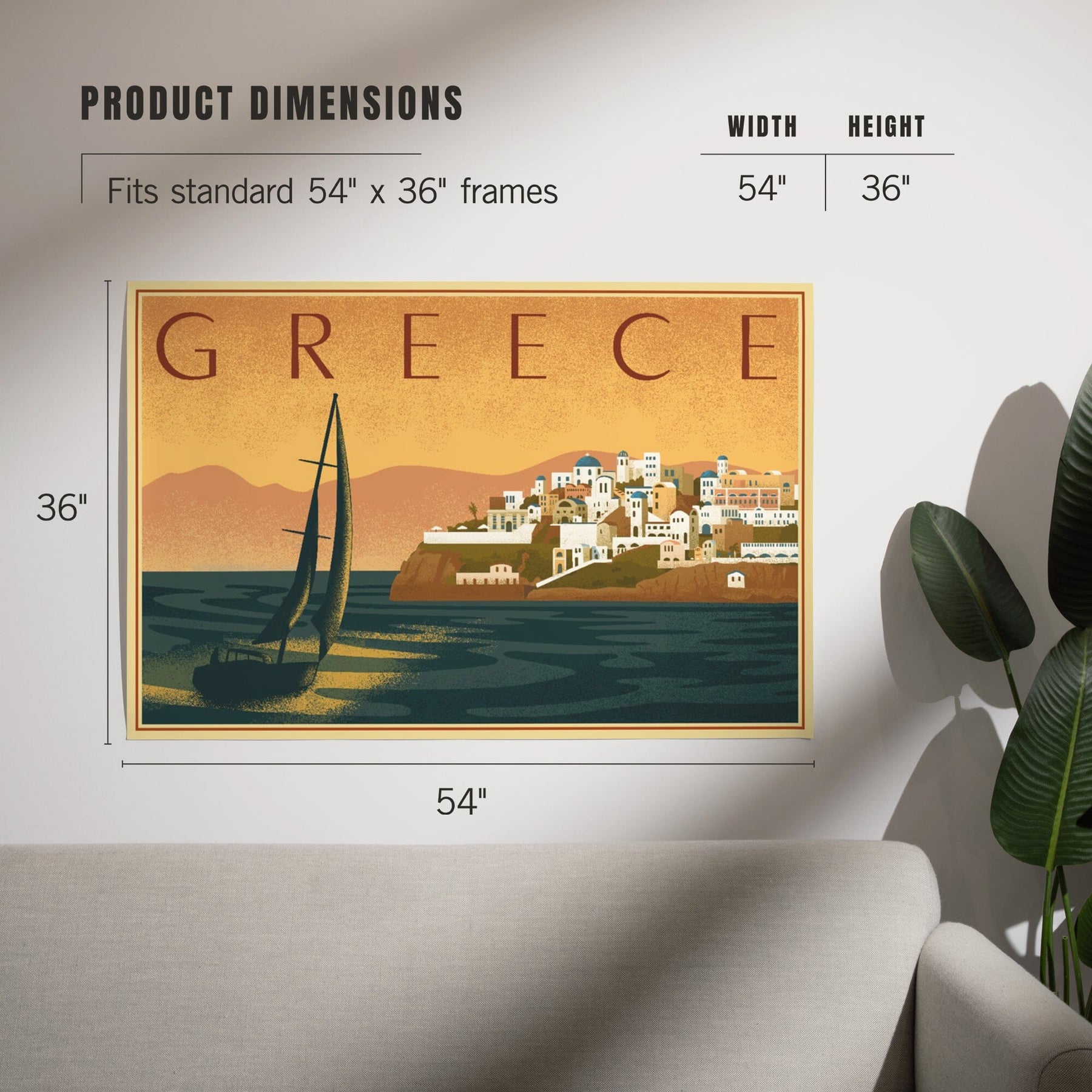 Greece, City with Sailboat, Lithograph, Art & Giclee Prints - Lantern Press