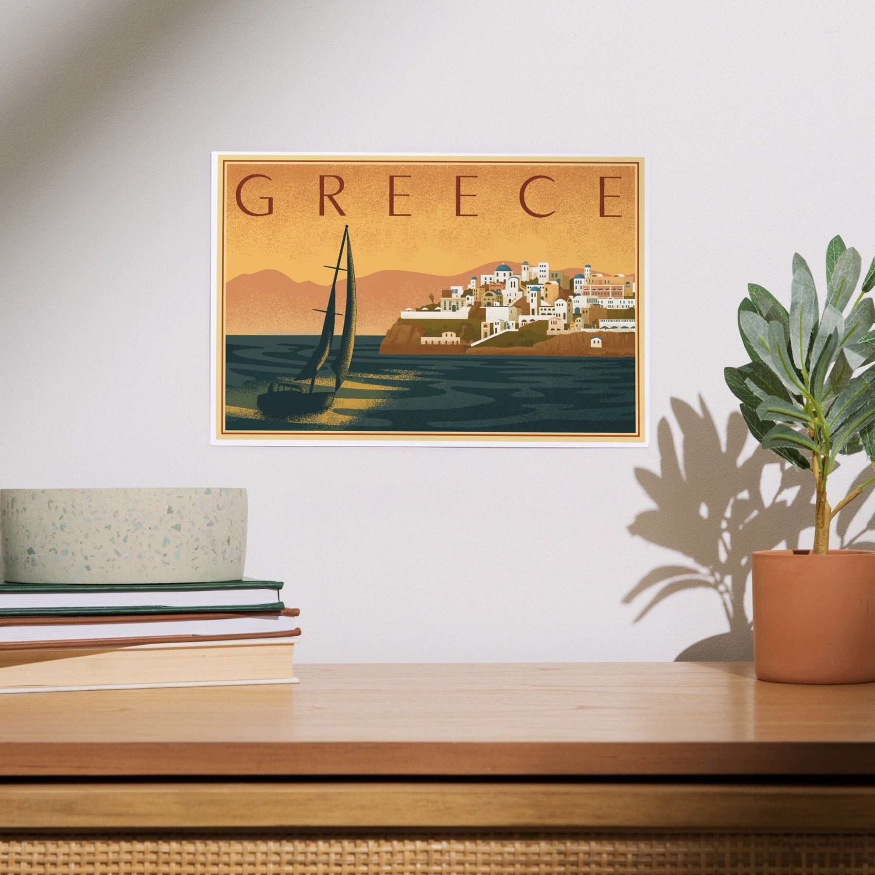 Greece, City with Sailboat, Lithograph, Art & Giclee Prints
