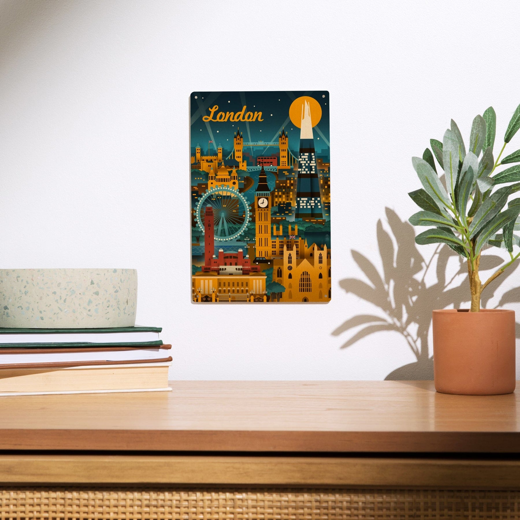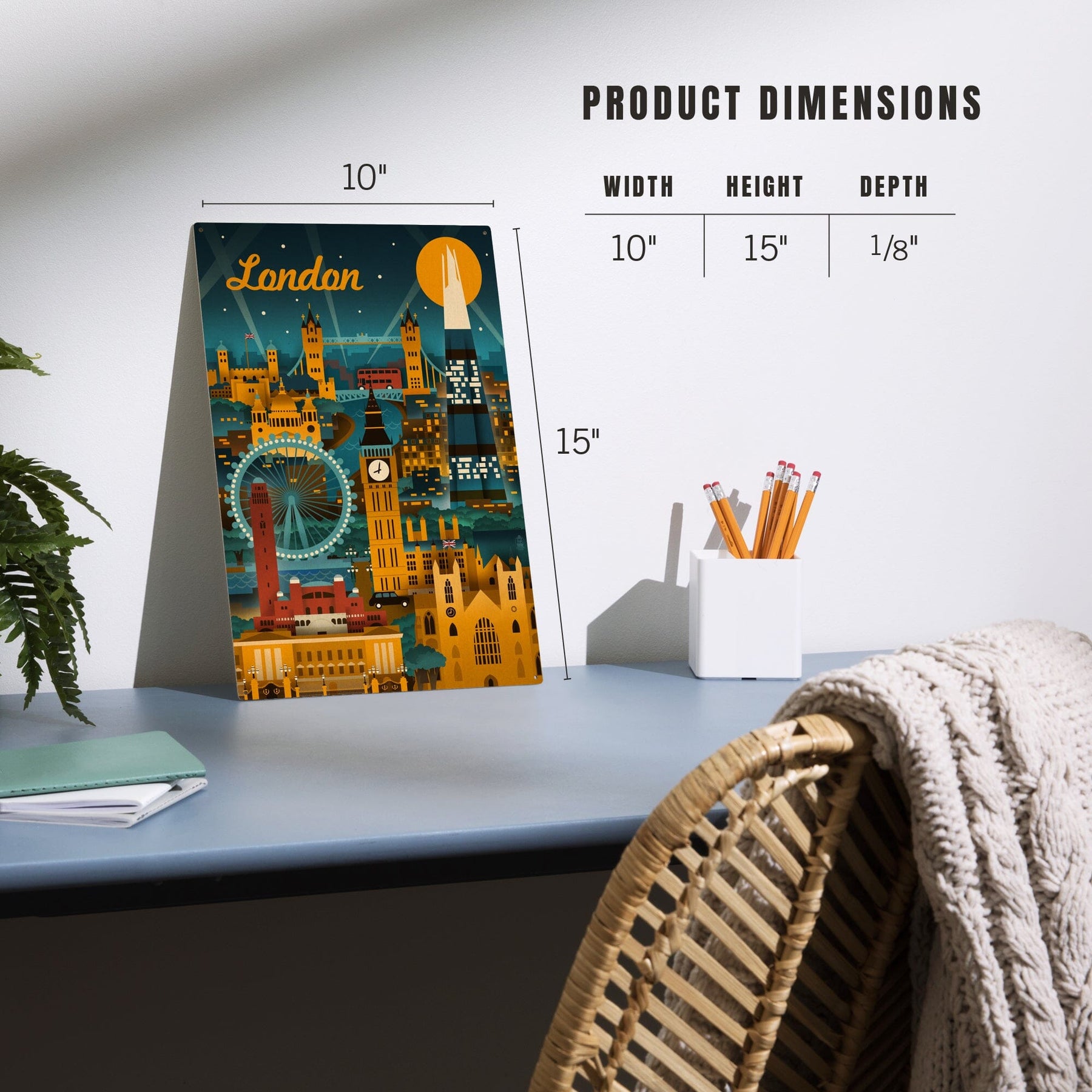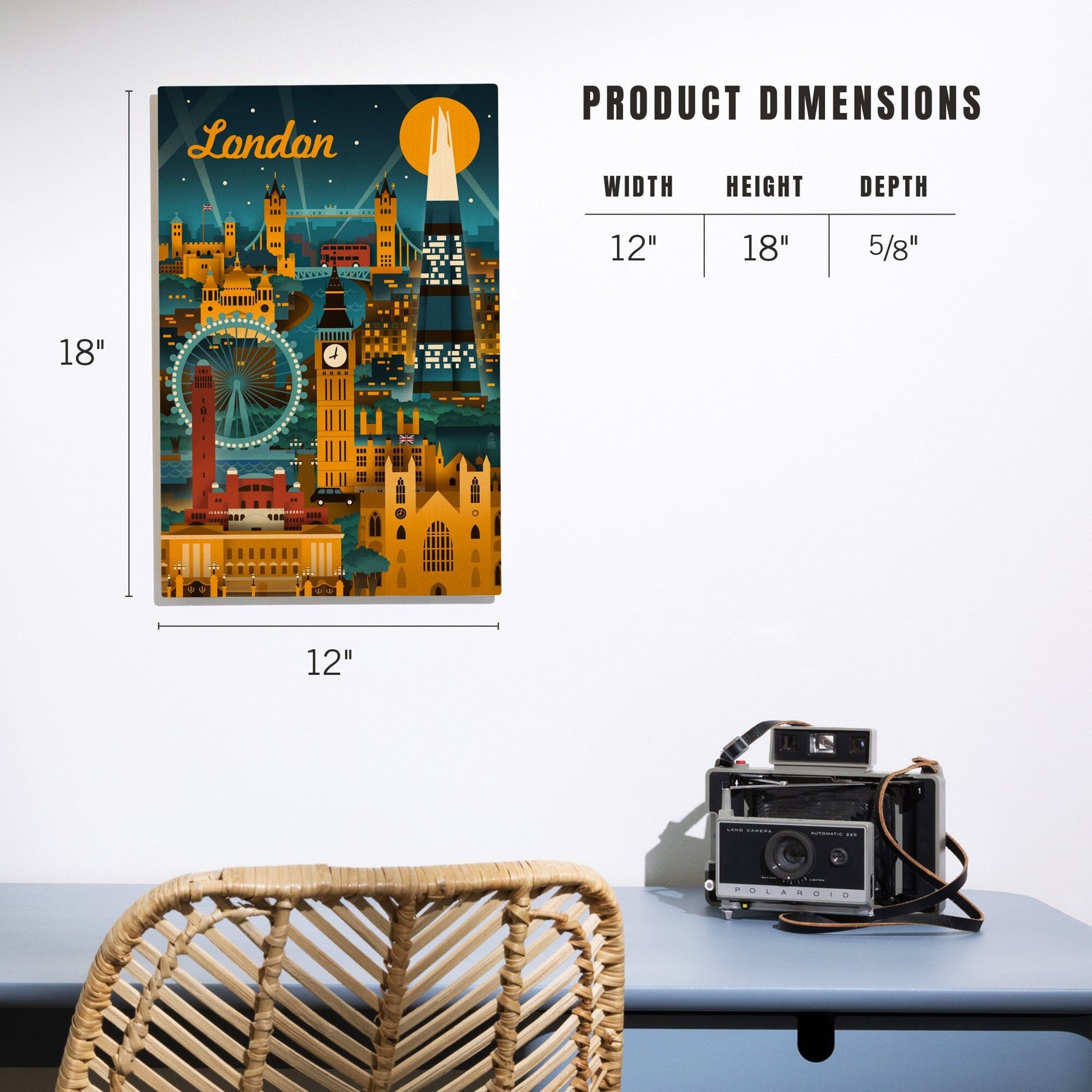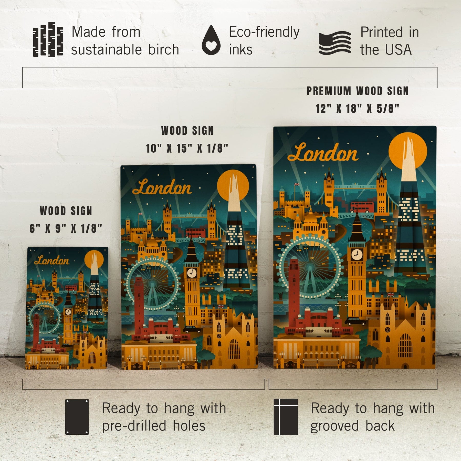 London, England, Retro Skyline, Lantern Press Artwork, Wood Signs and Postcards