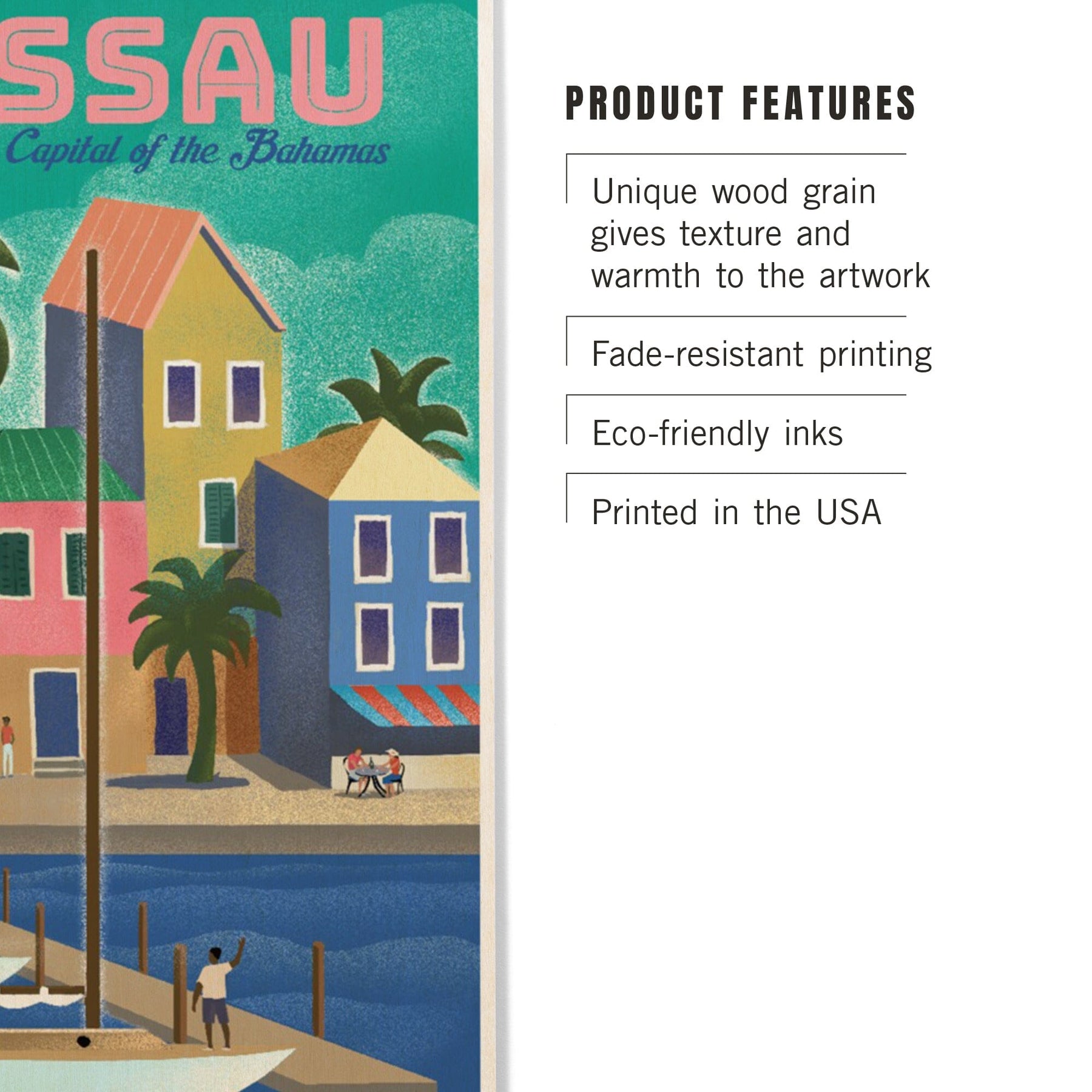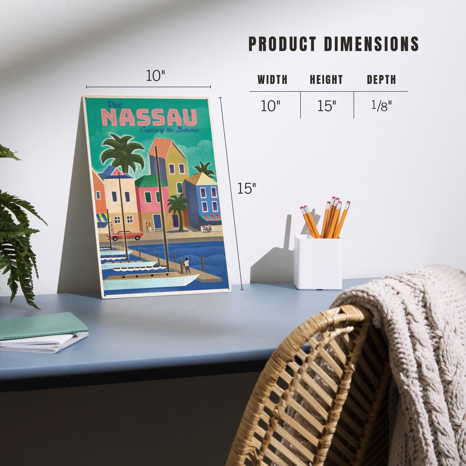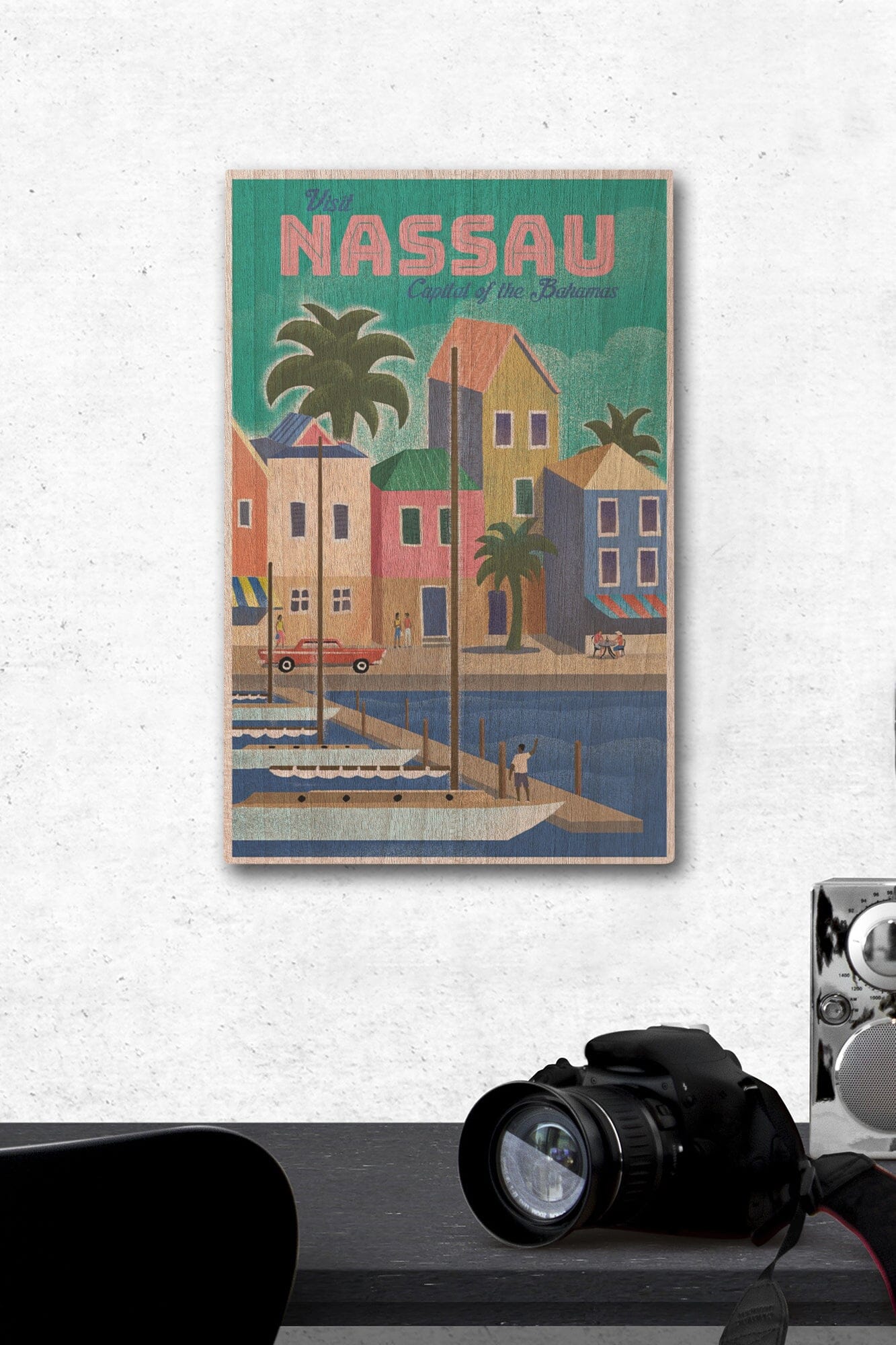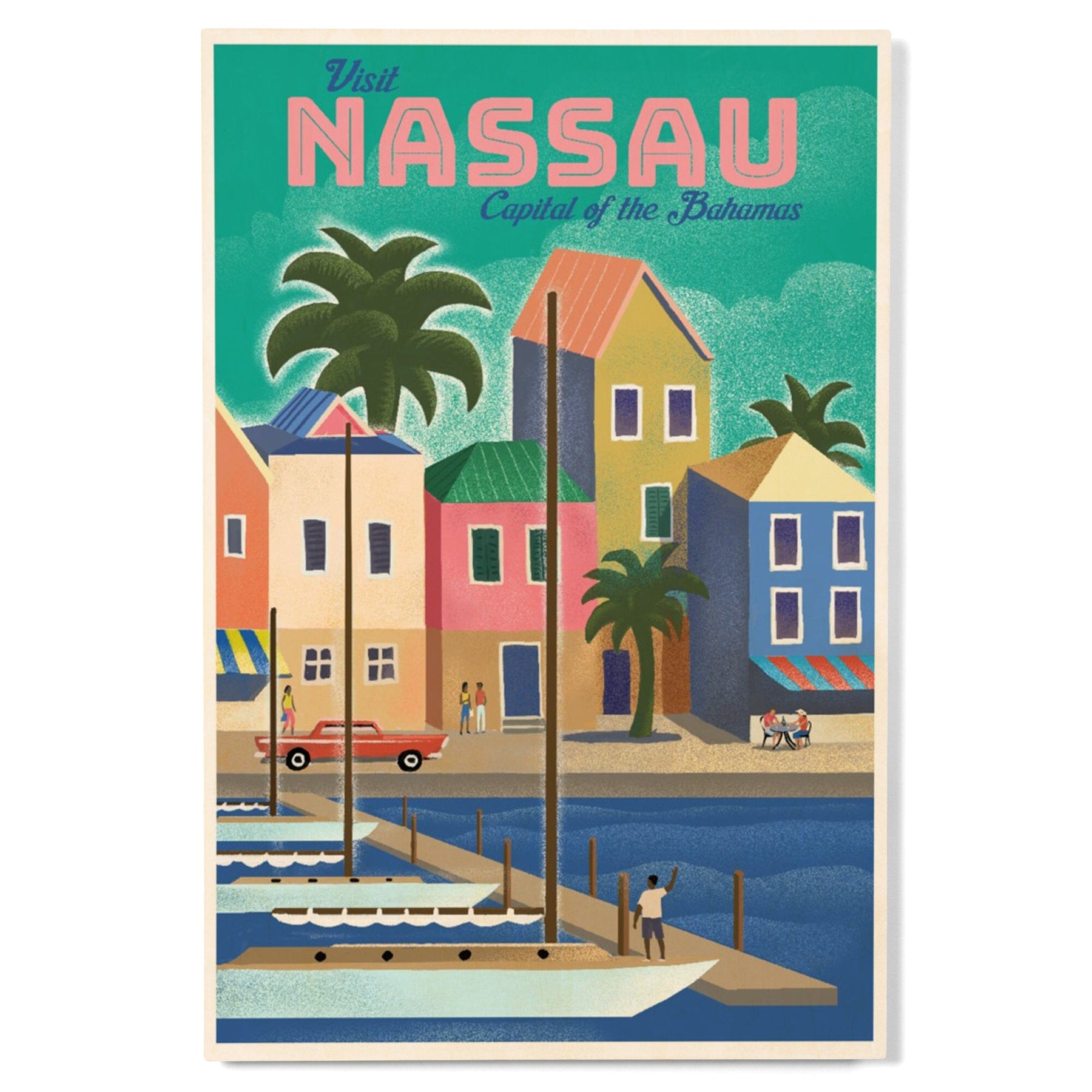Nassau, Bahamas, Waterside Dock, Lithograph, Lantern Press Artwork, Wood Signs and Postcards Wood Lantern Press