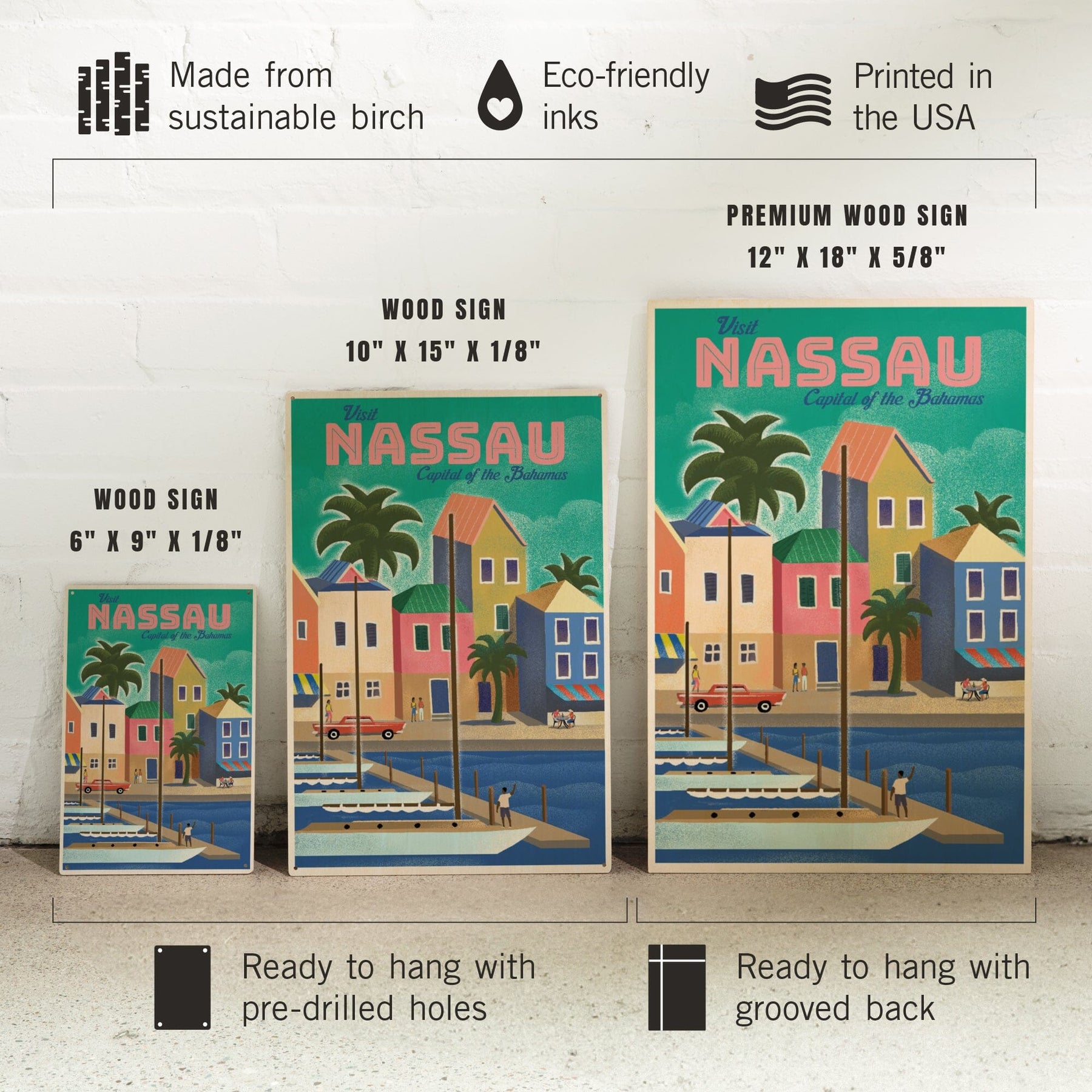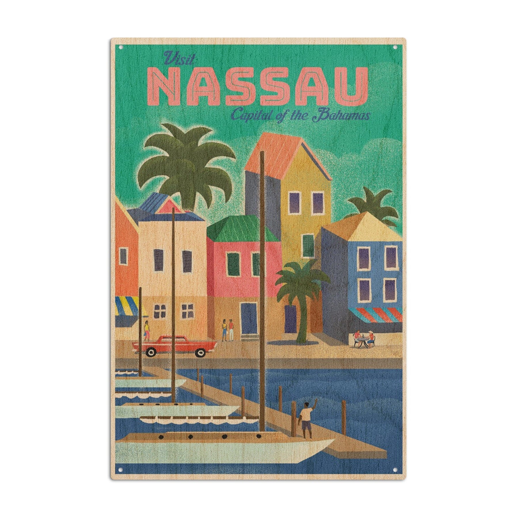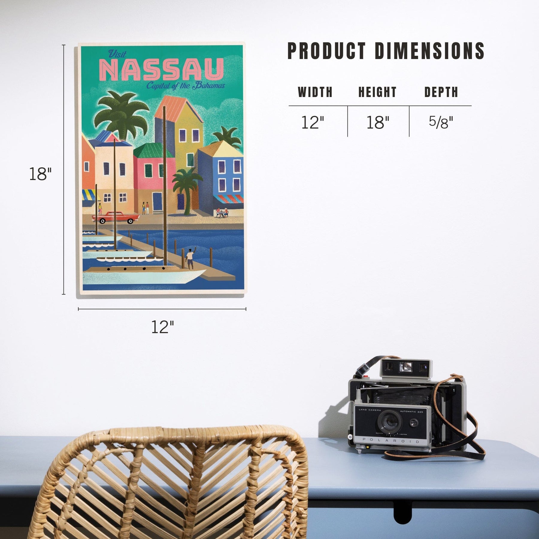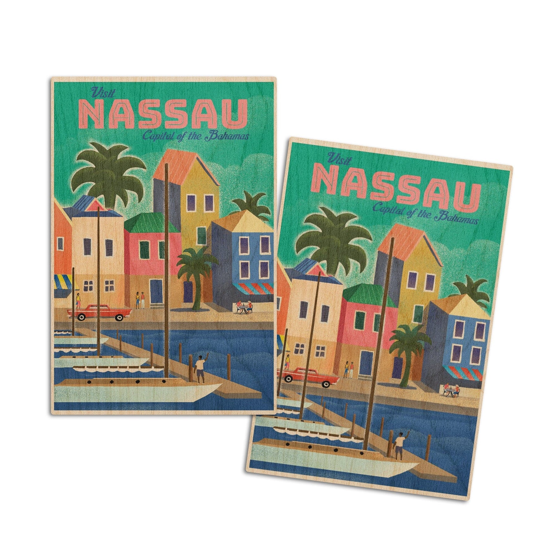 Nassau, Bahamas, Waterside Dock, Lithograph, Lantern Press Artwork, Wood Signs and Postcards Wood Lantern Press