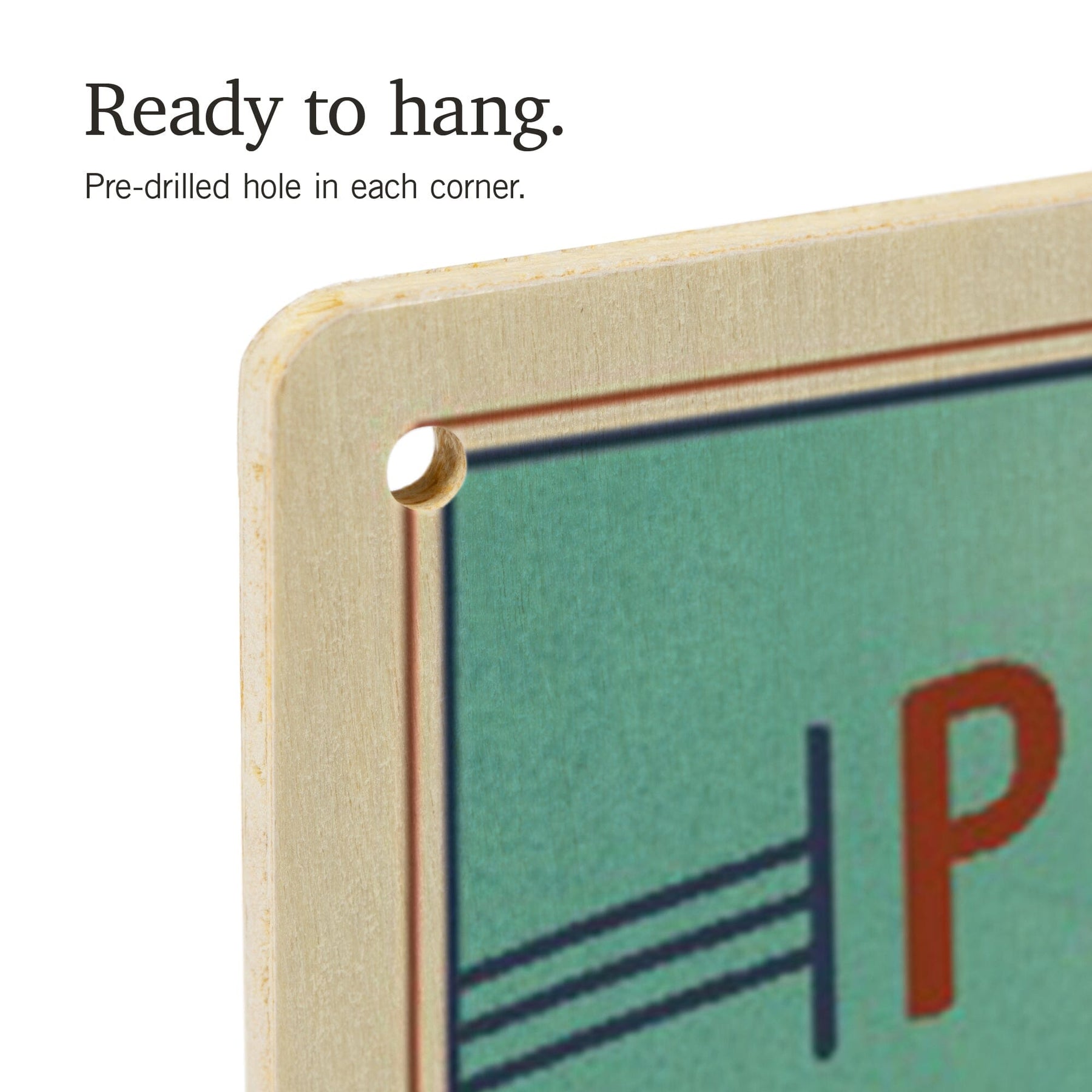 • Hole in each corner, ready to hang