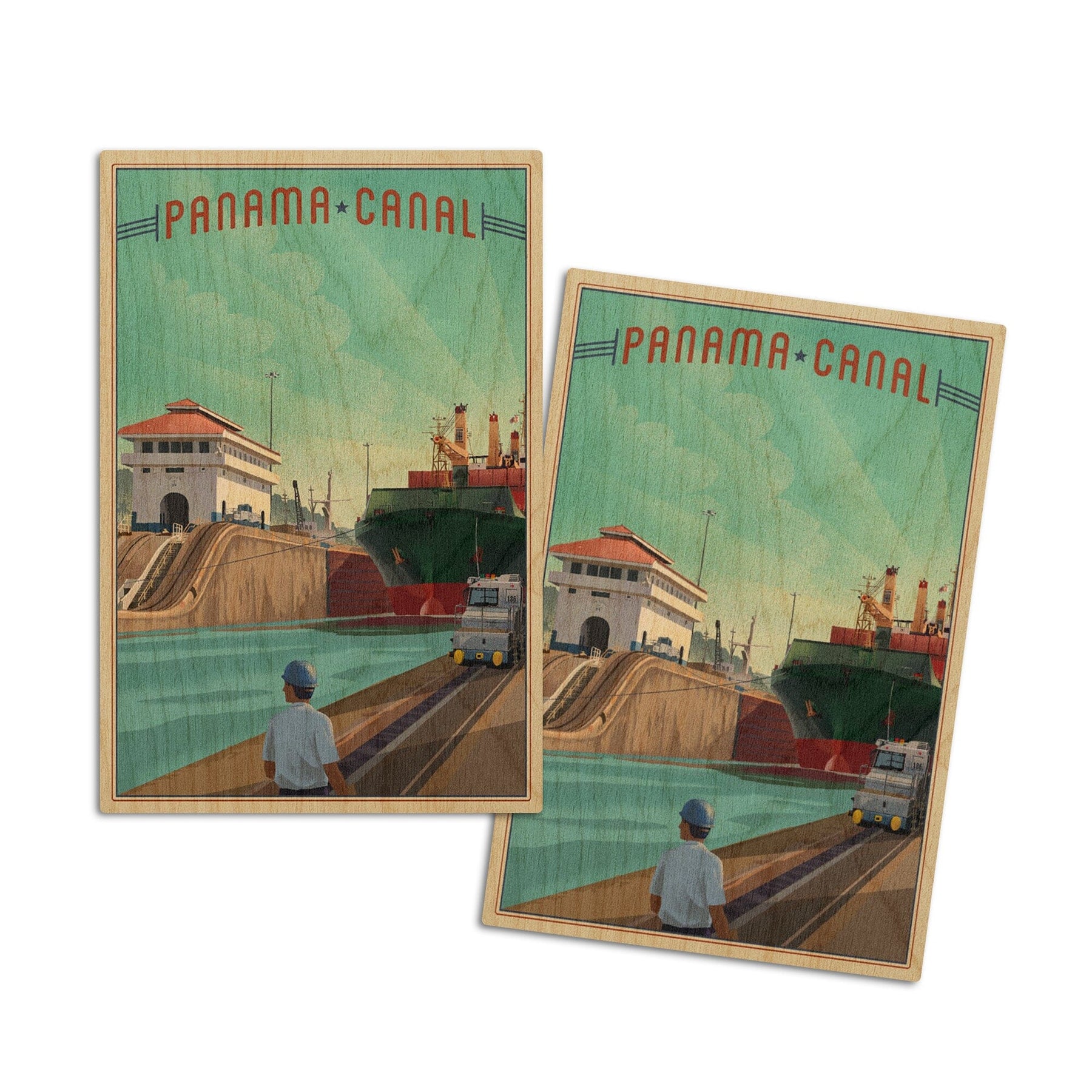 Panama Canal, Litho, Lantern Press Artwork, Wood Signs and Postcards