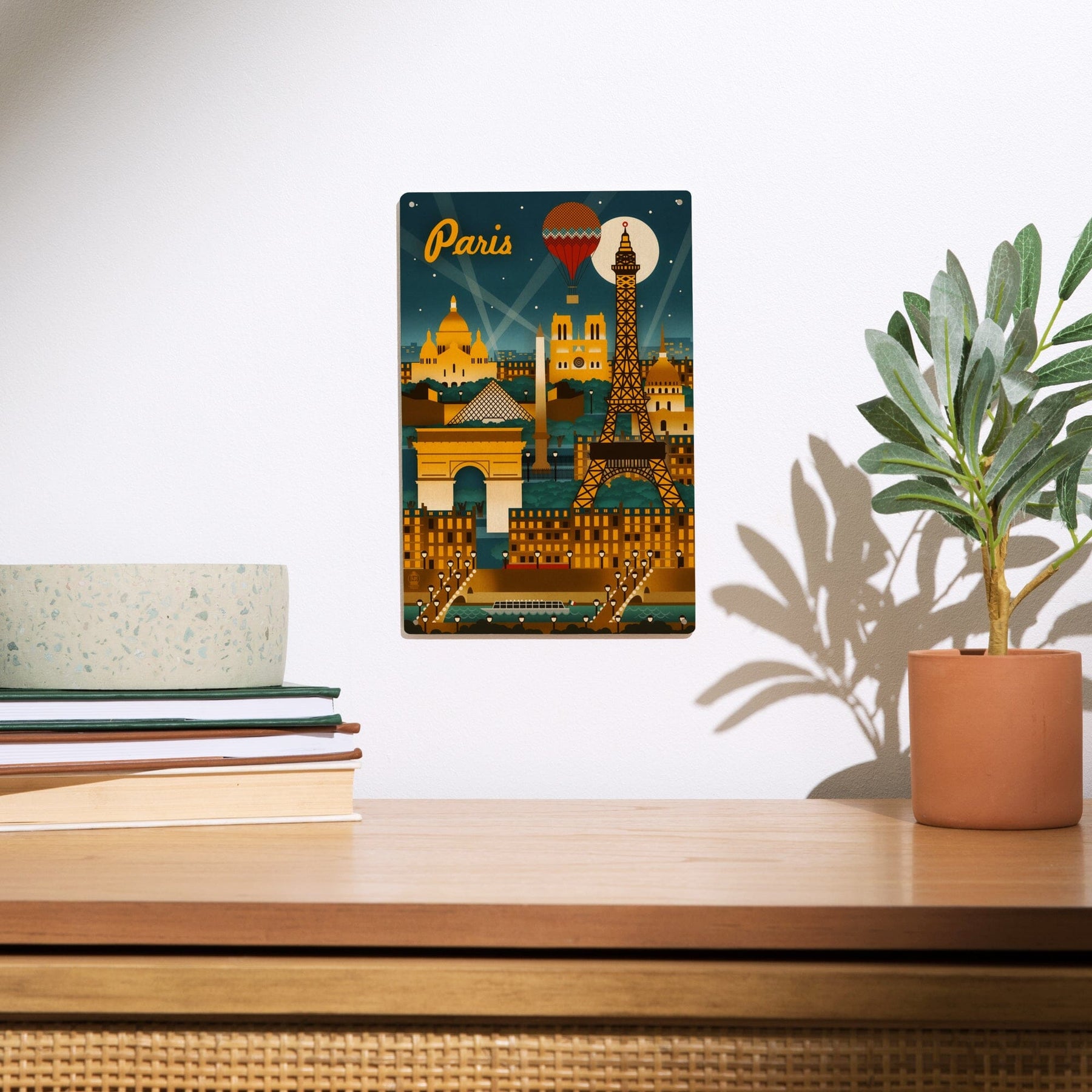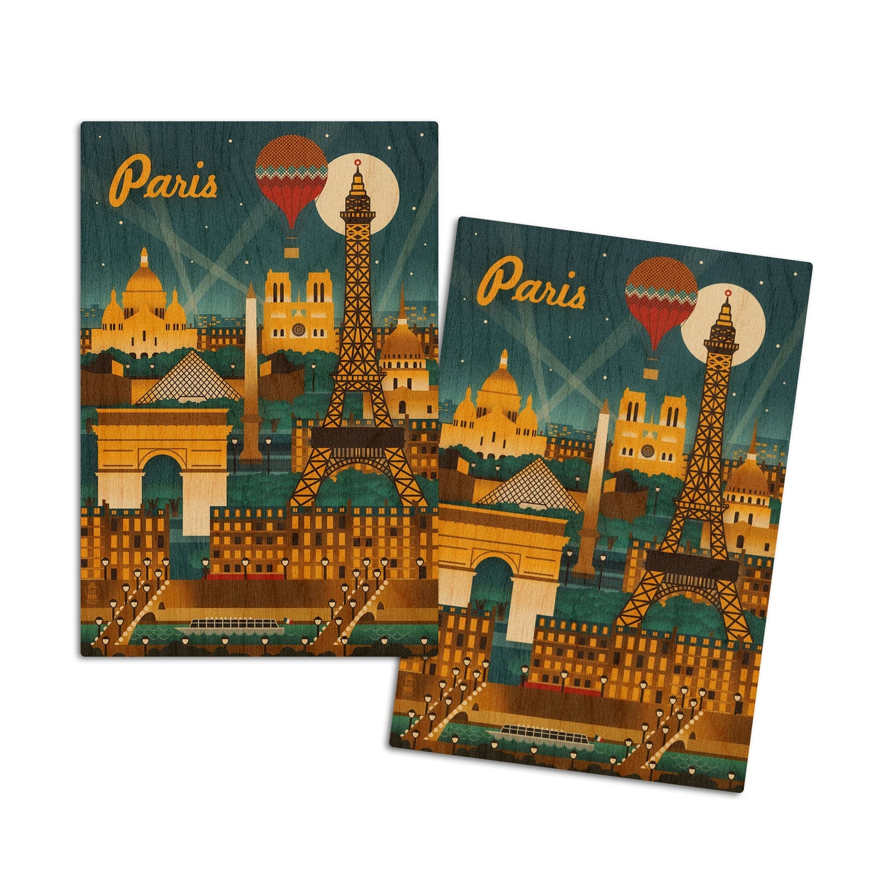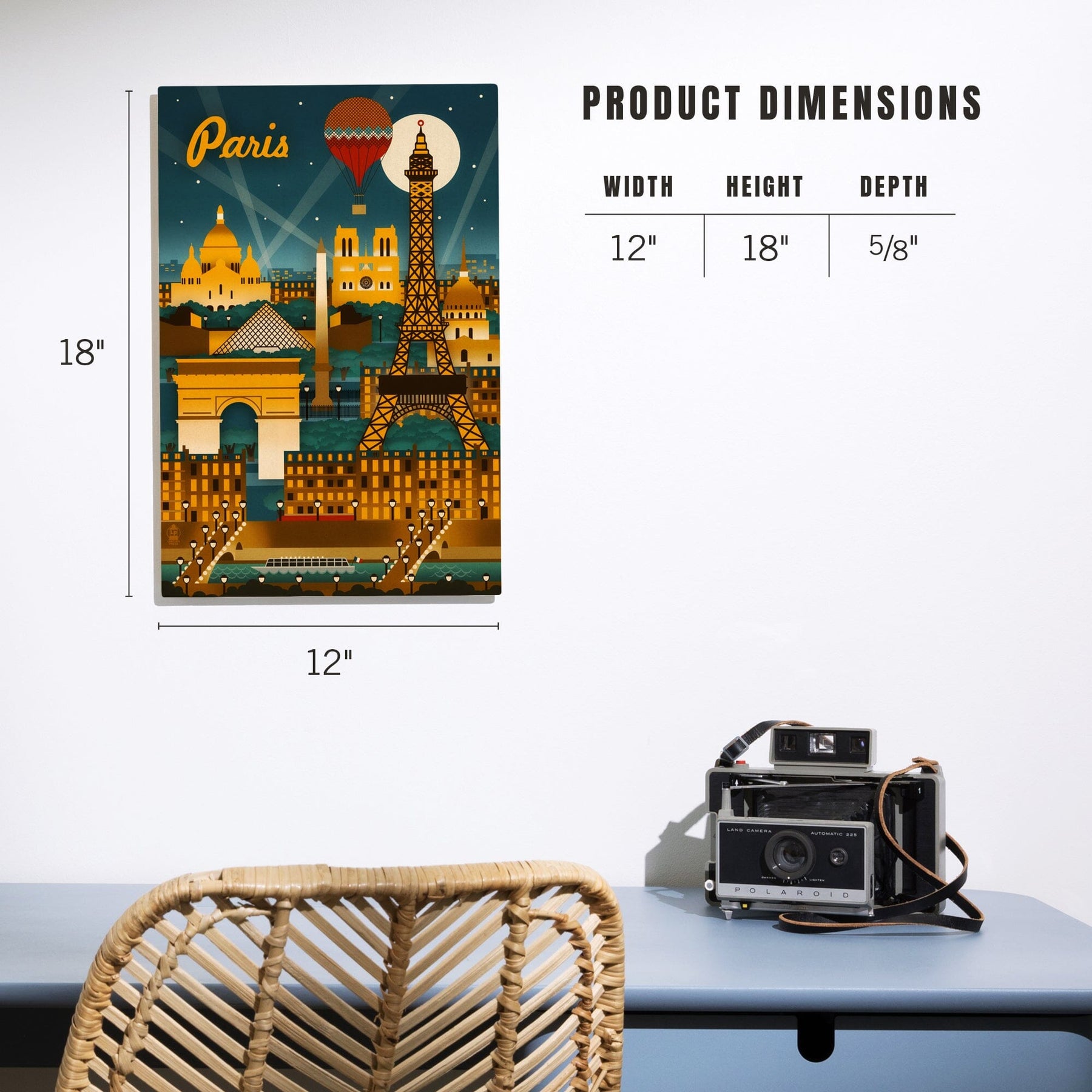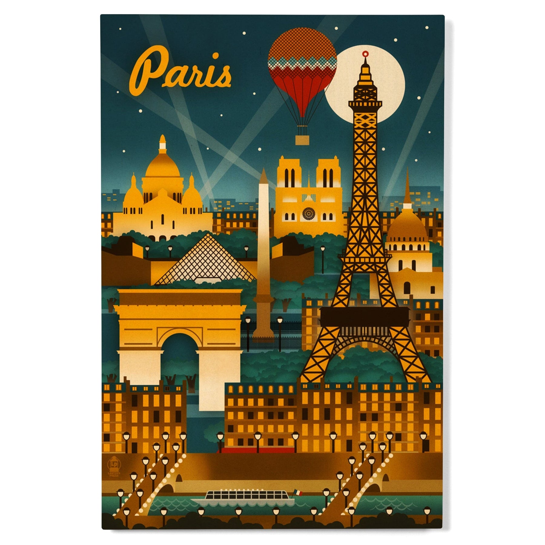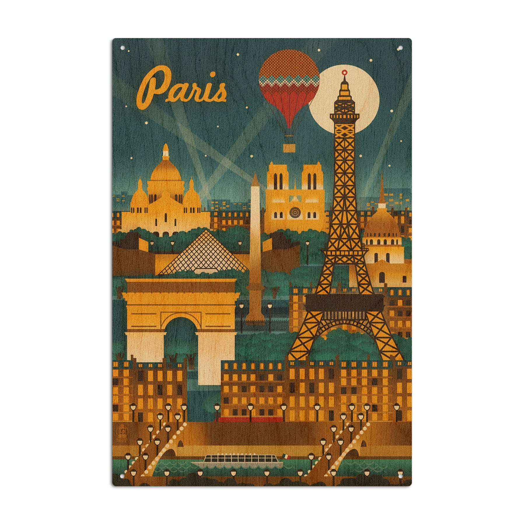Paris, France, Retro Skyline, Lantern Press Artwork, Wood Signs and Postcards Wood Lantern Press