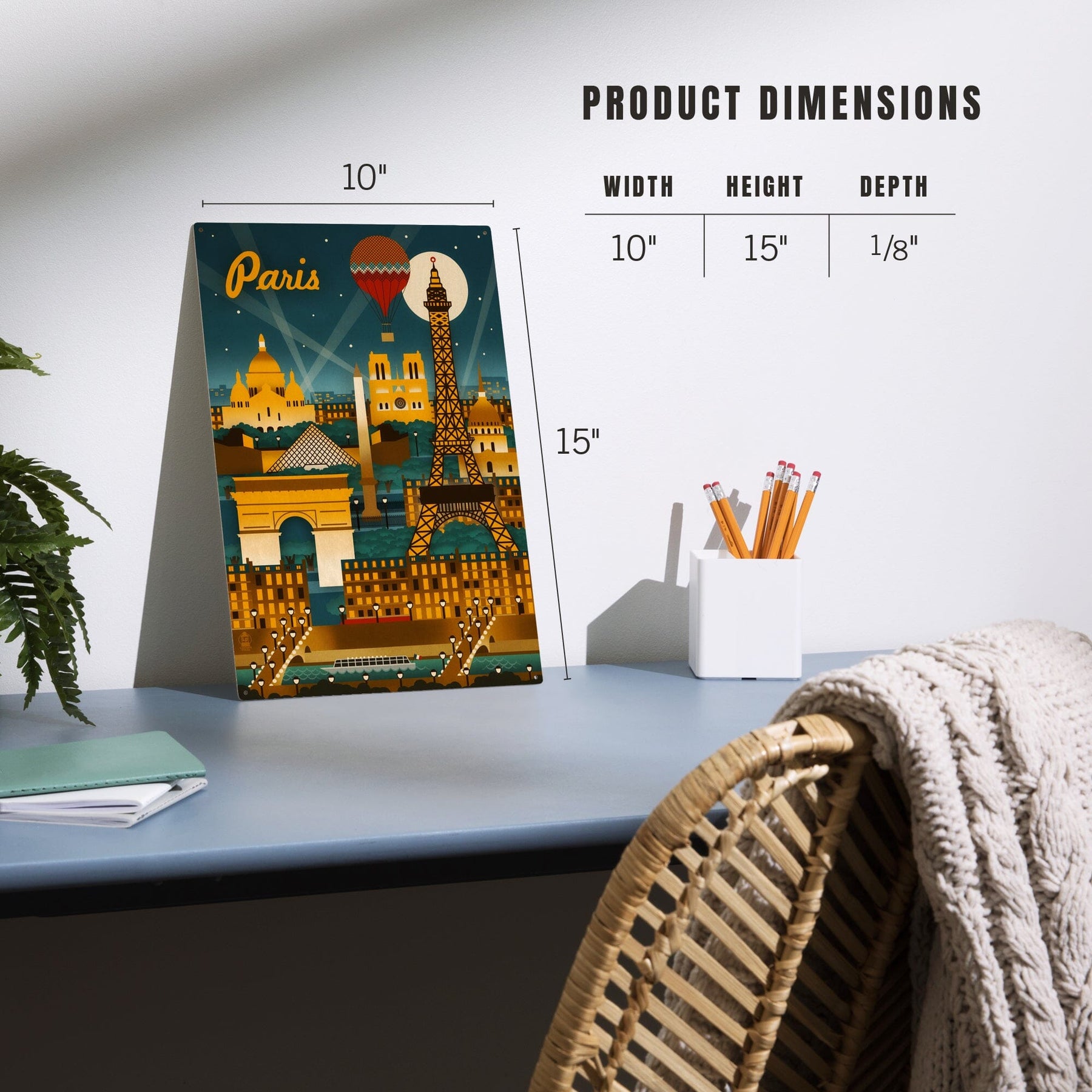 Paris, France, Retro Skyline, Lantern Press Artwork, Wood Signs and Postcards