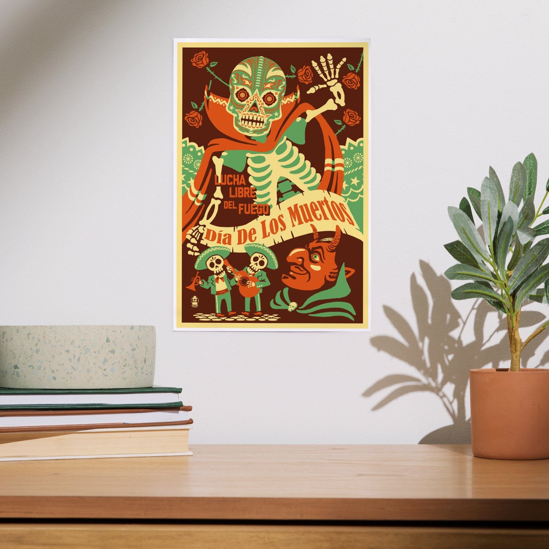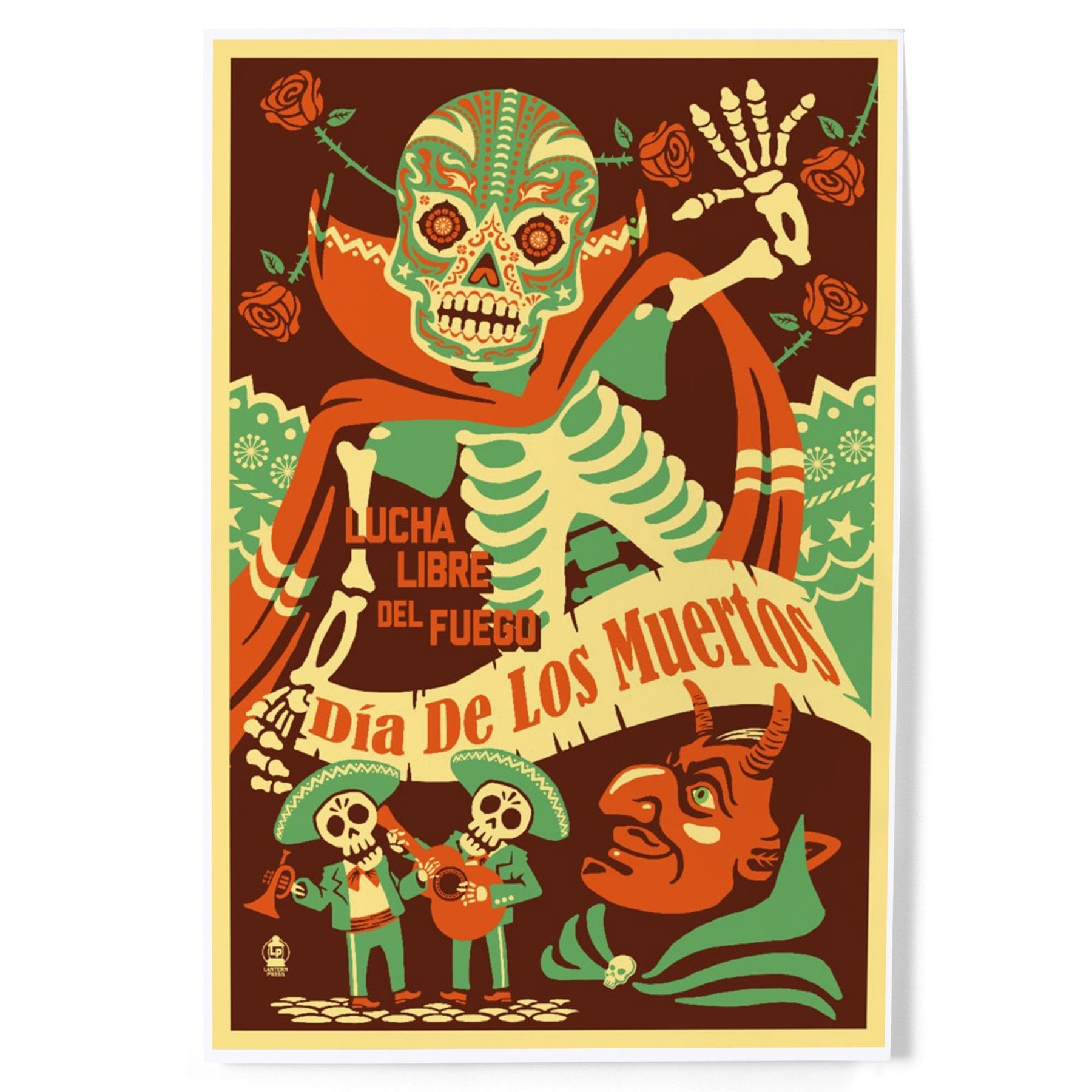 Dia de los Muertos (Day of the Dead), Lucha Libre del Fuego, Art & Giclee Prints - Lantern Press