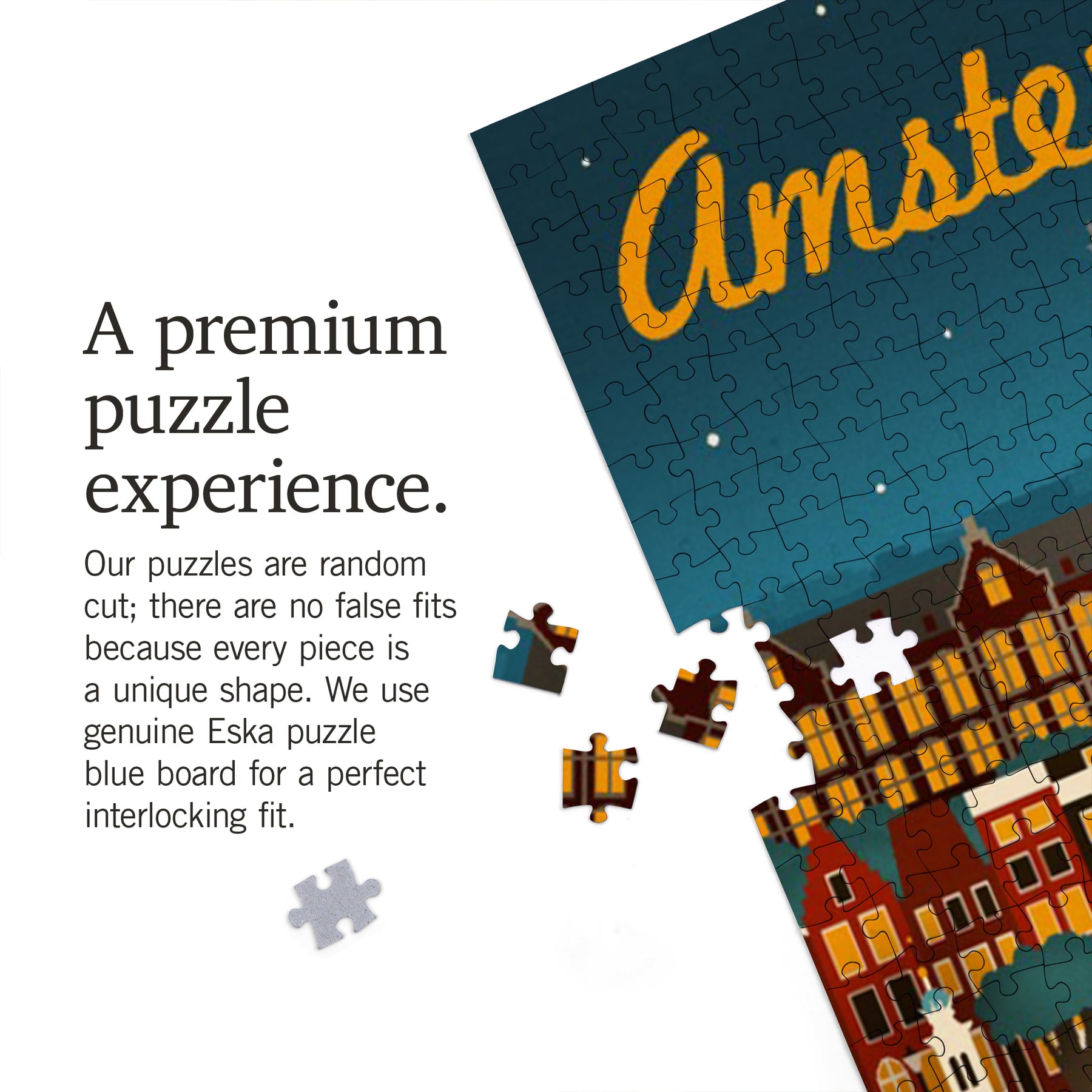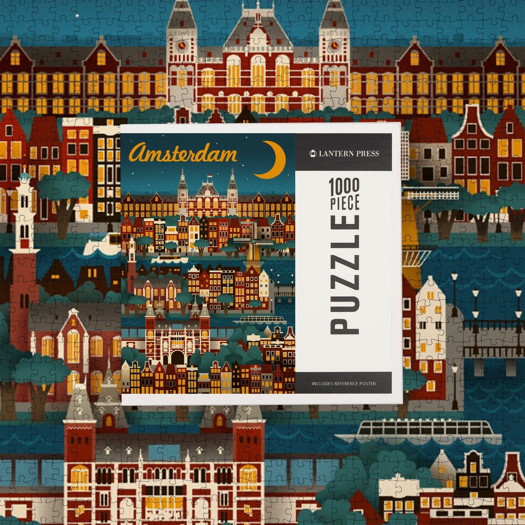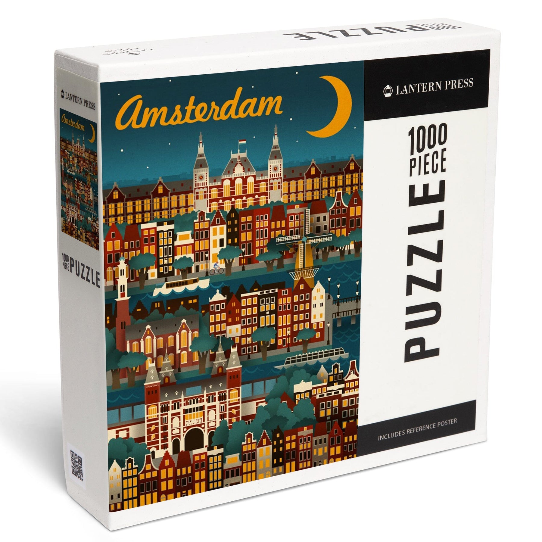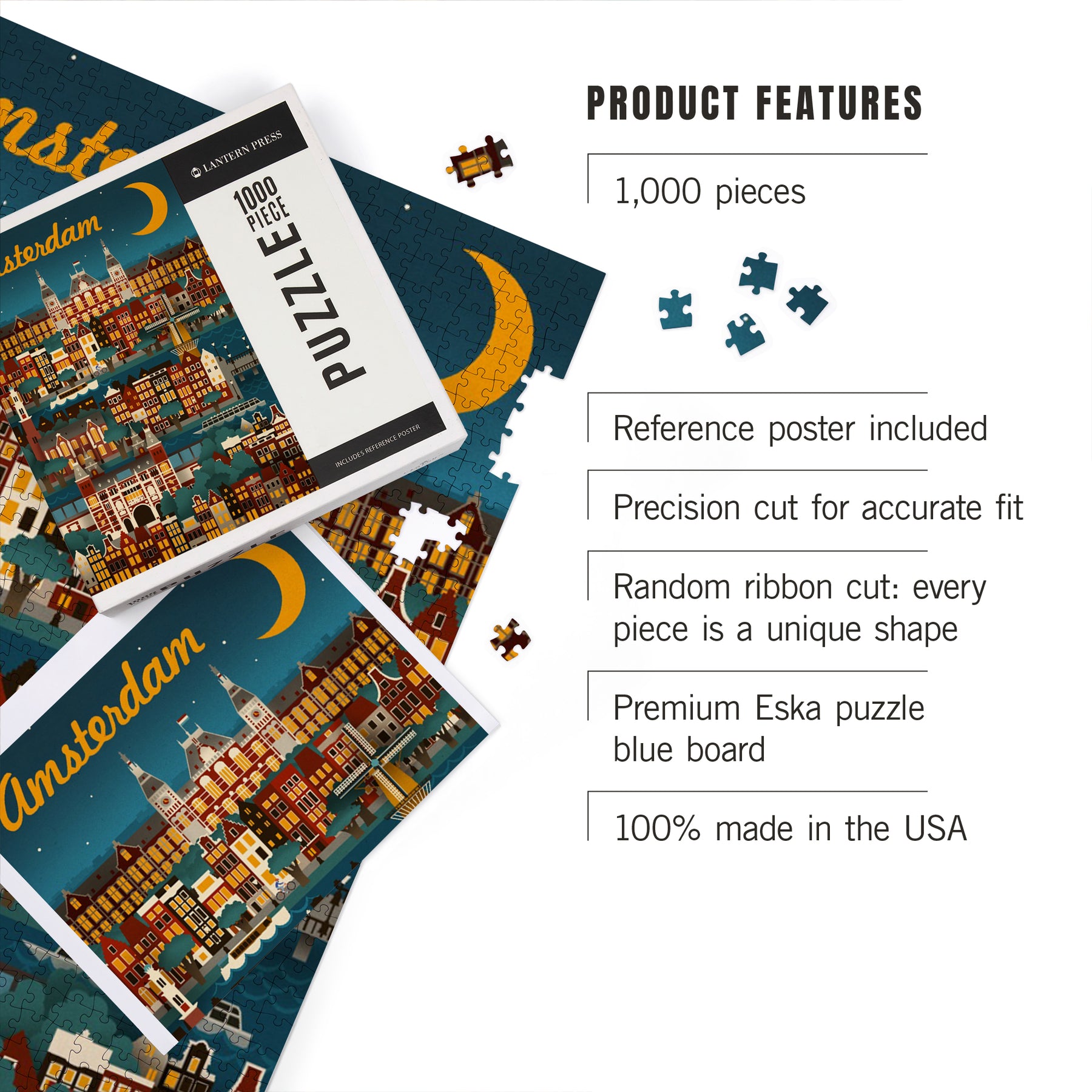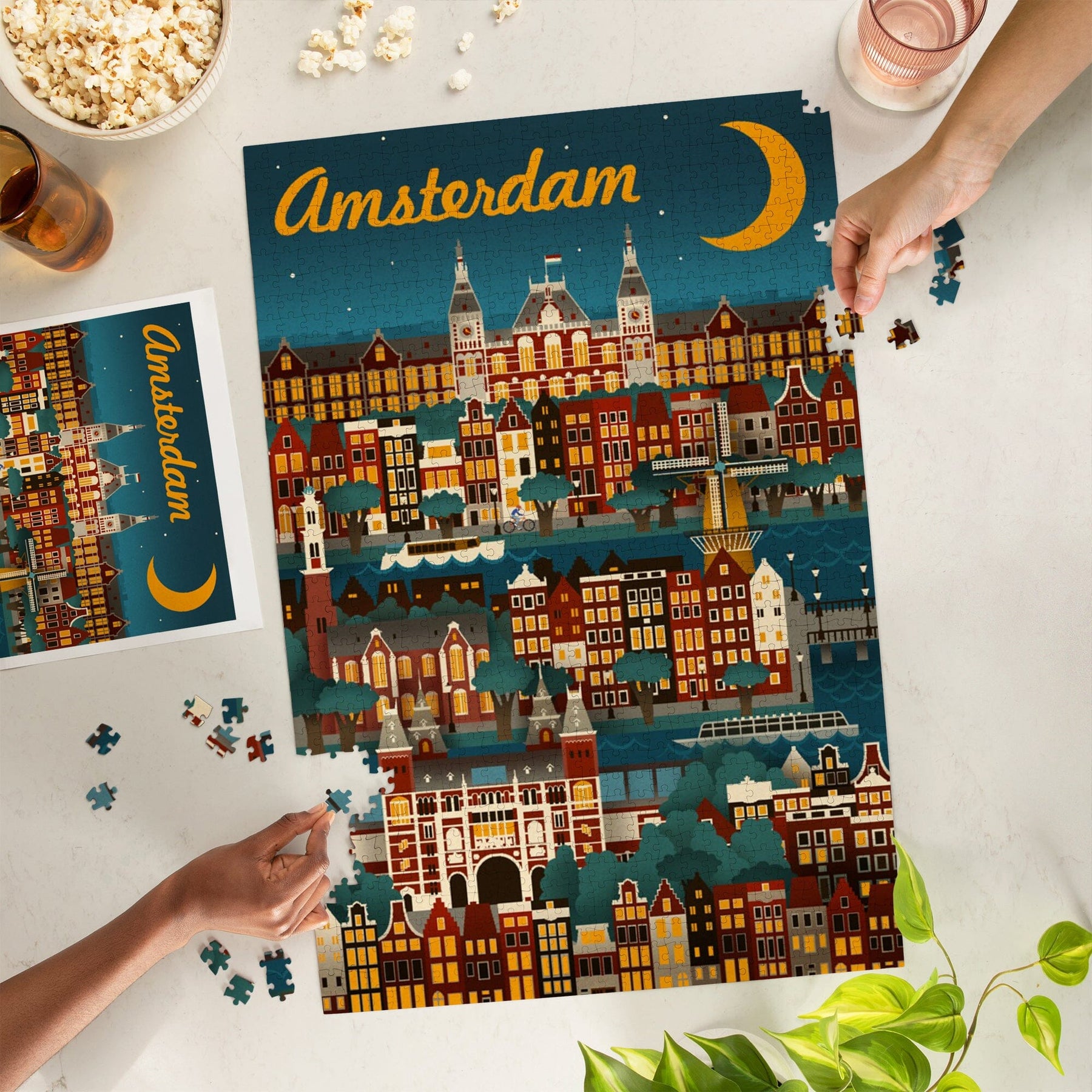 Amsterdam, Retro Skyline, Jigsaw Puzzle Puzzle Lantern Press