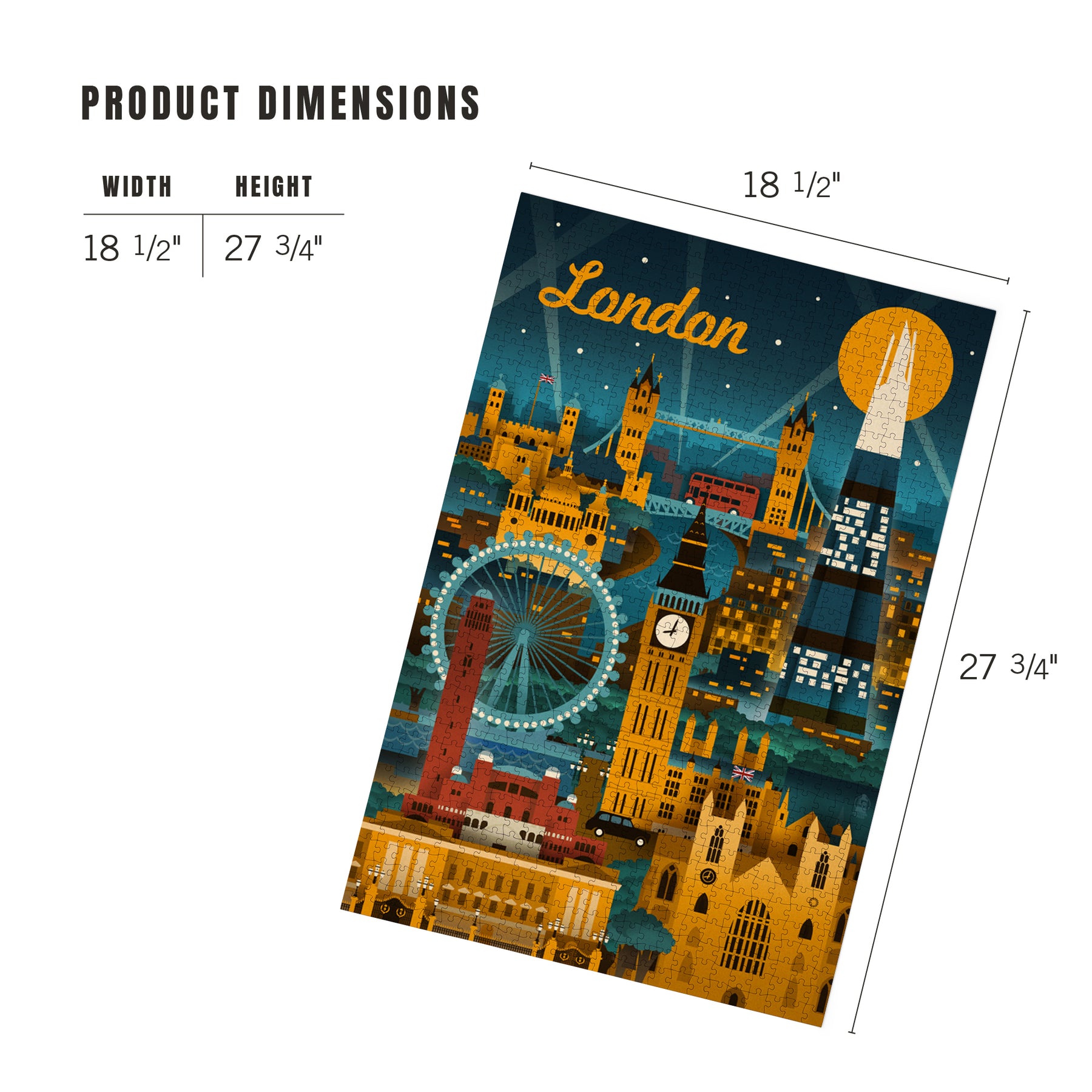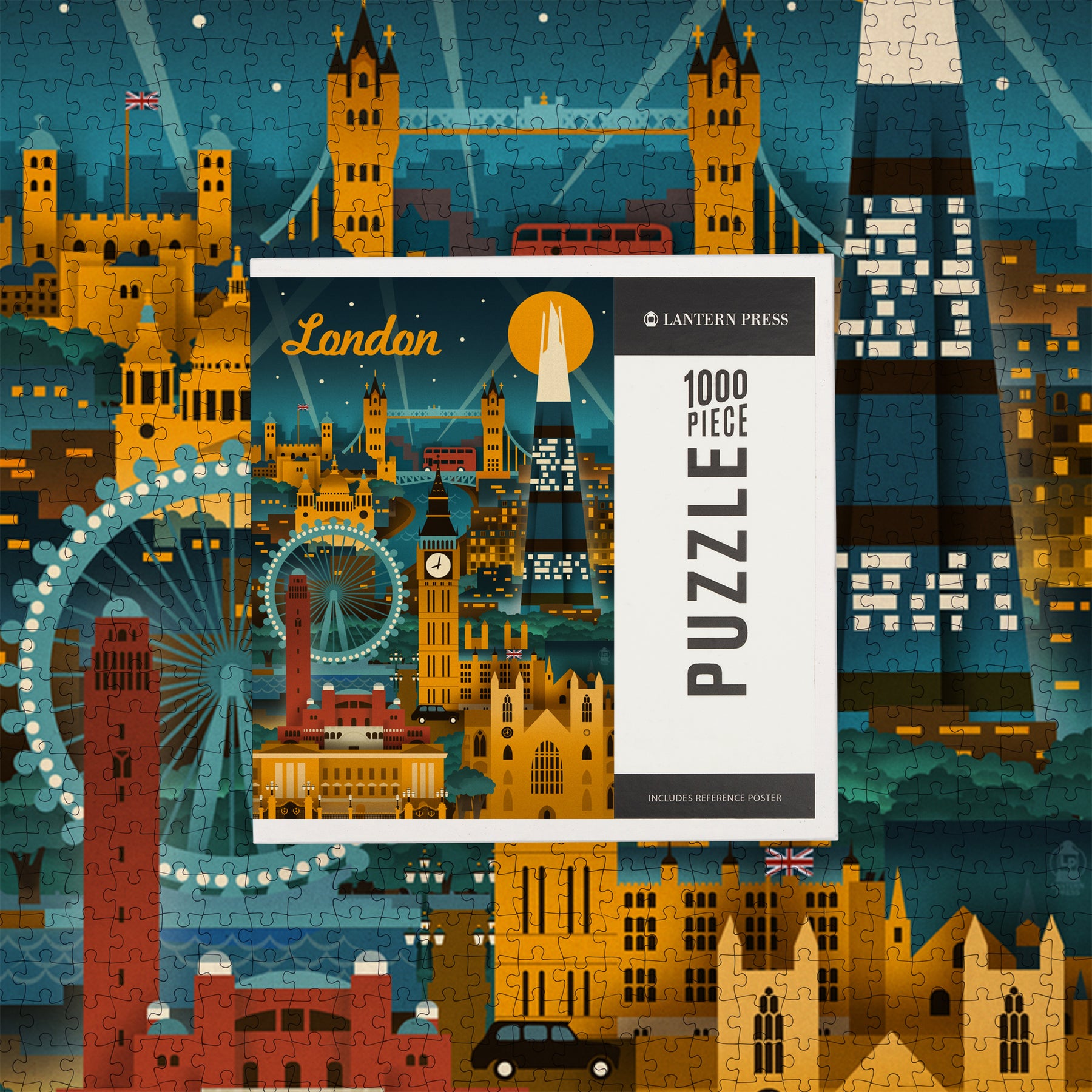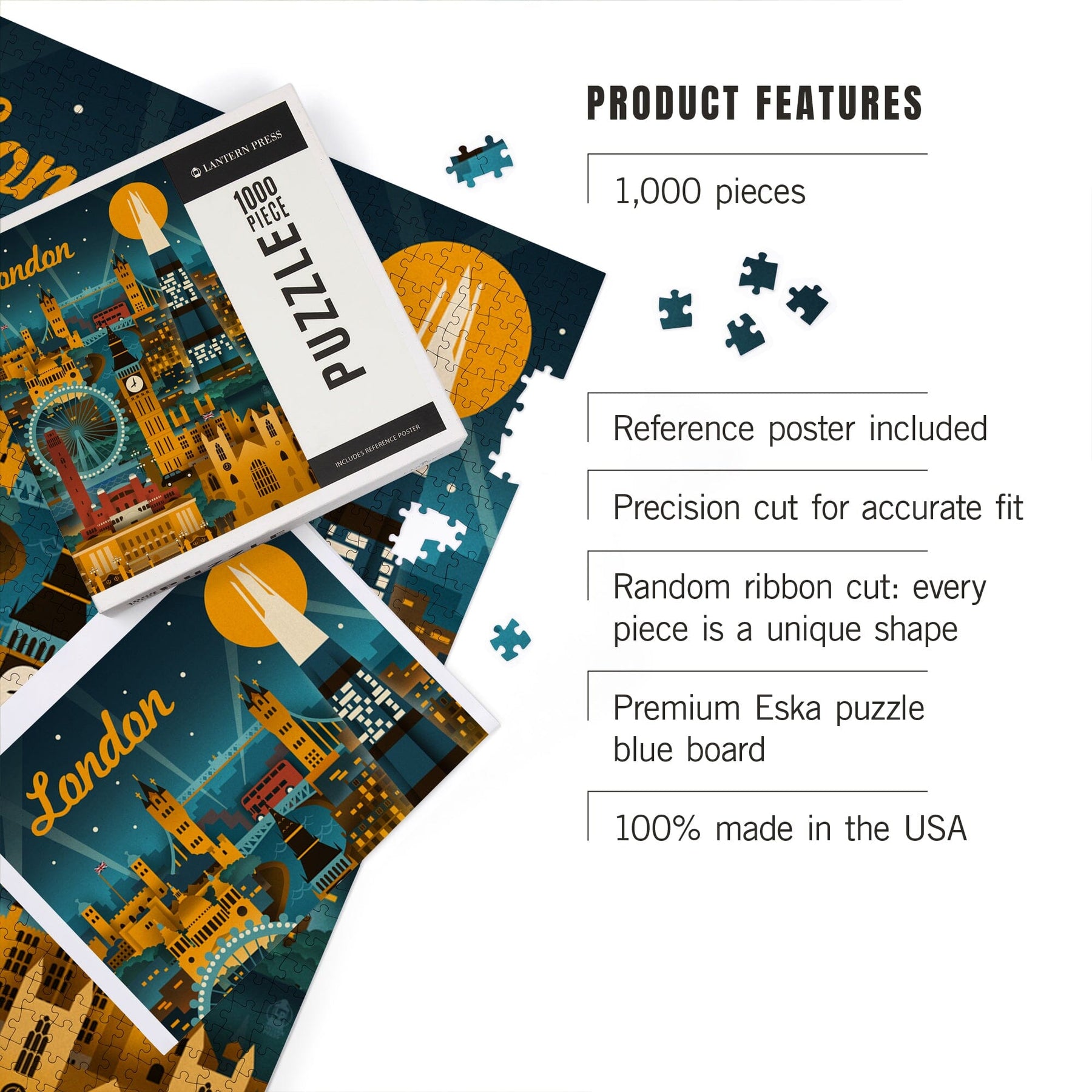 London, England, Retro Skyline, Jigsaw Puzzle Puzzle Lantern Press