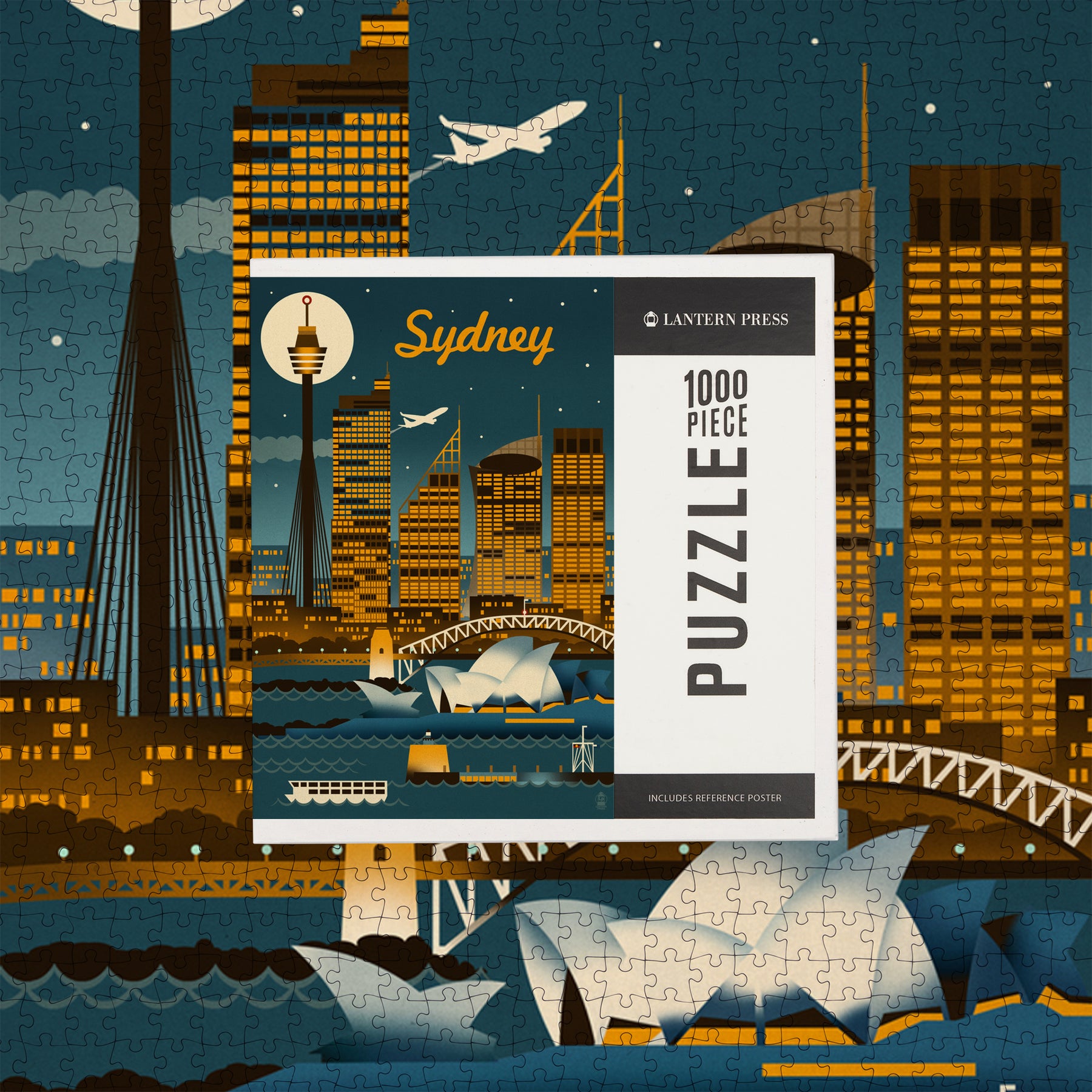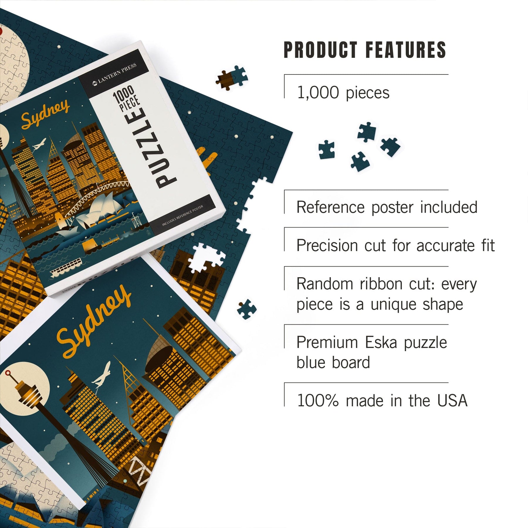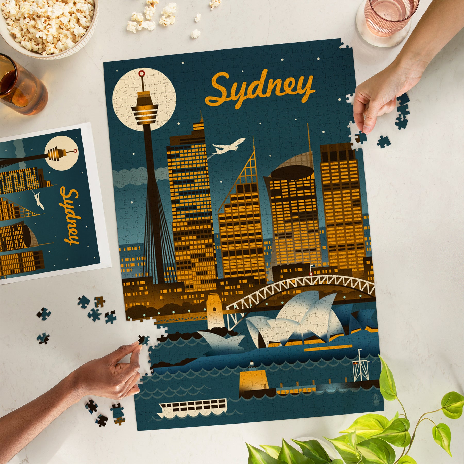 Sydney, Australia, Retro Skyline, Jigsaw Puzzle Puzzle Lantern Press