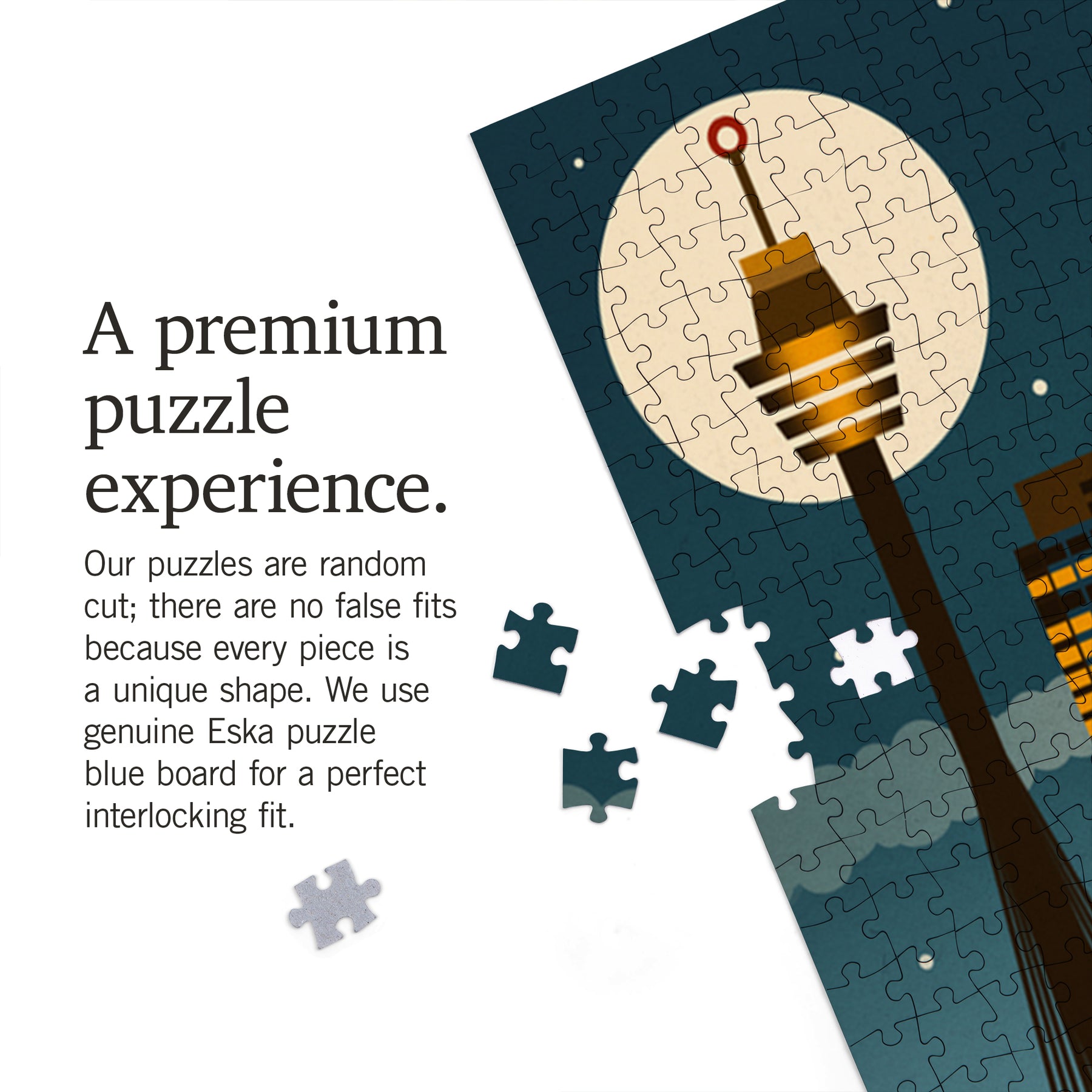 Tokyo, Japan, Retro Skyline, Jigsaw Puzzle Puzzle Lantern Press