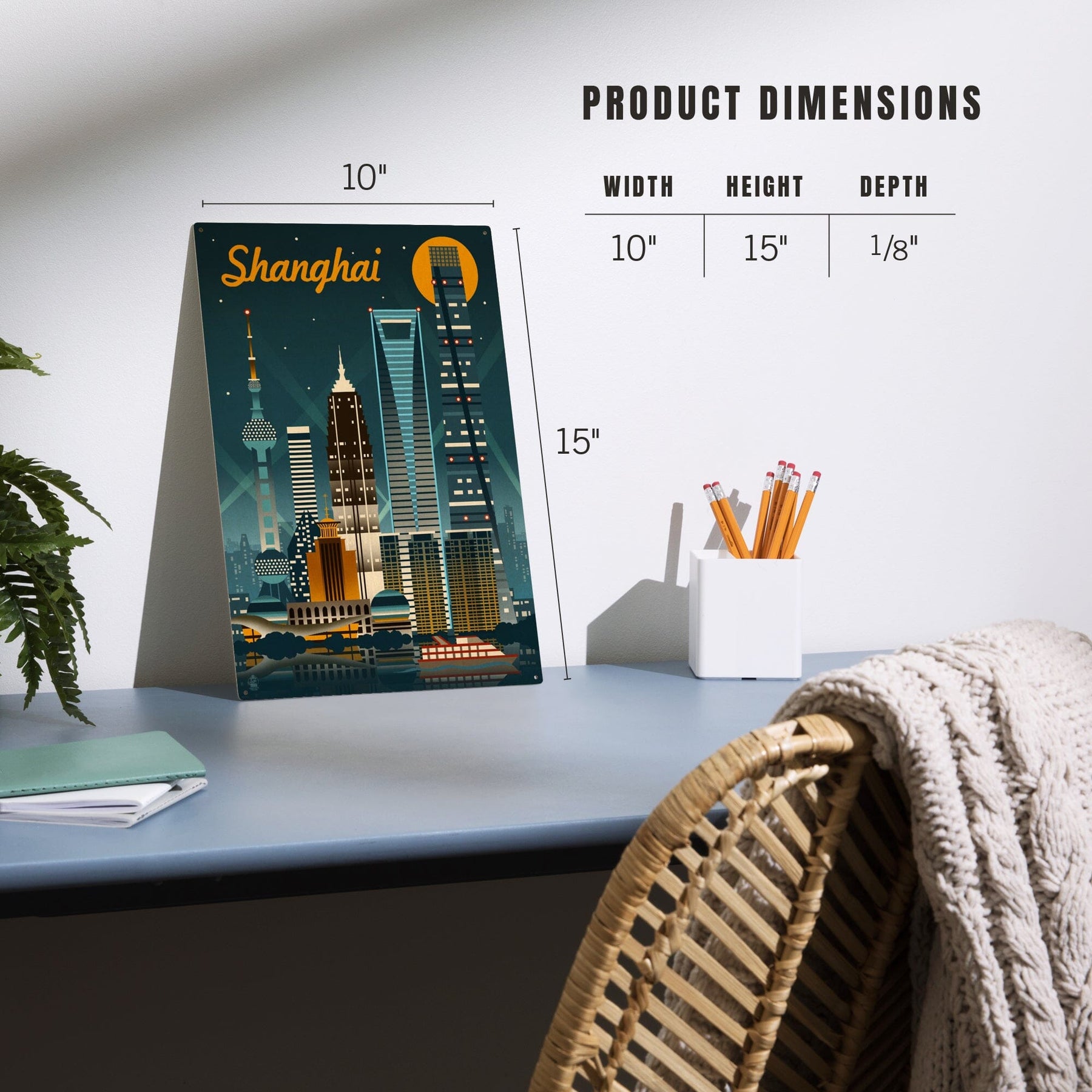Shanghai, China, Retro Skyline, Lantern Press Artwork, Wood Signs and Postcards