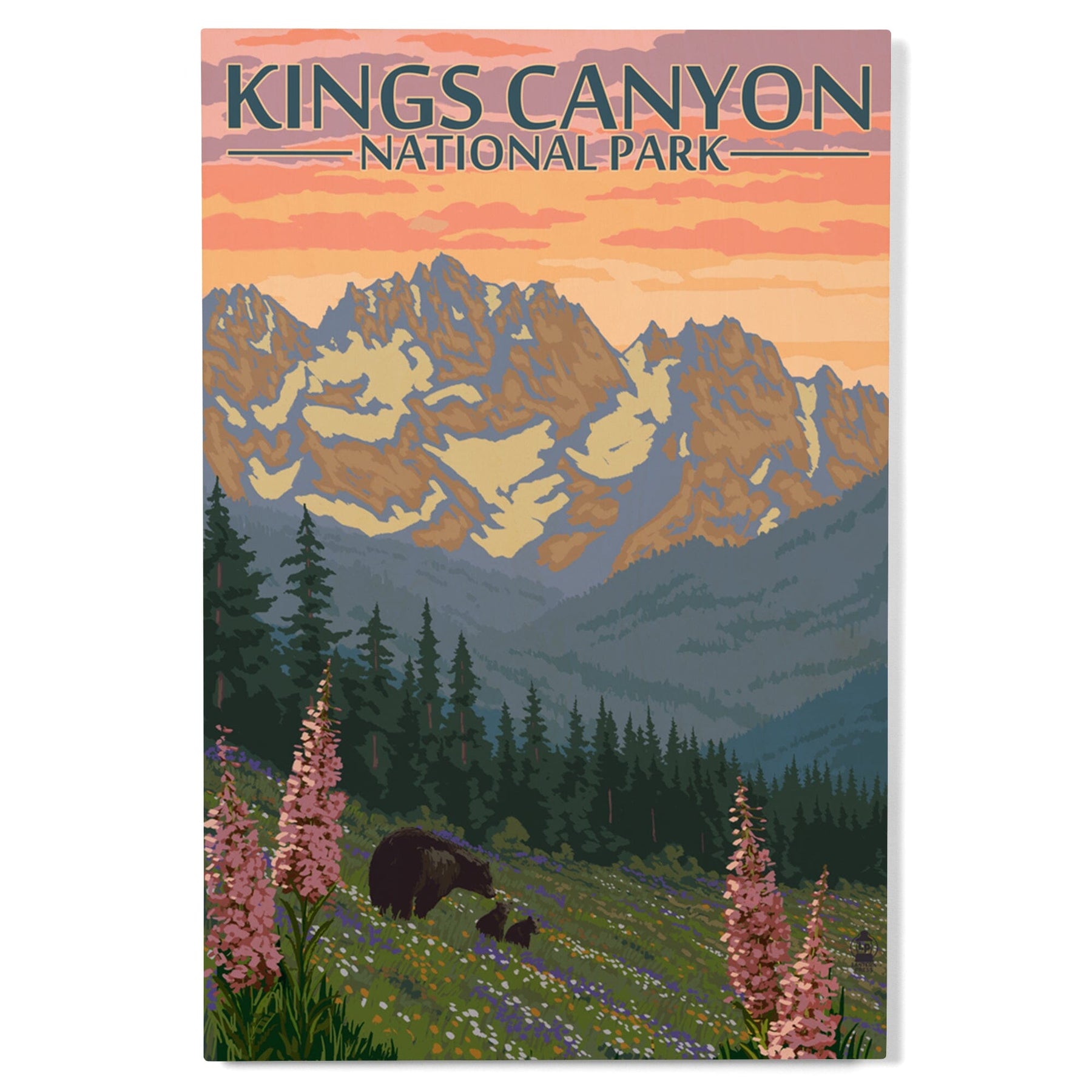 Kings Canyon National Park, Bear Family & Spring Flowers, Lantern Press Poster, Wood Signs and Postcards - Lantern Press