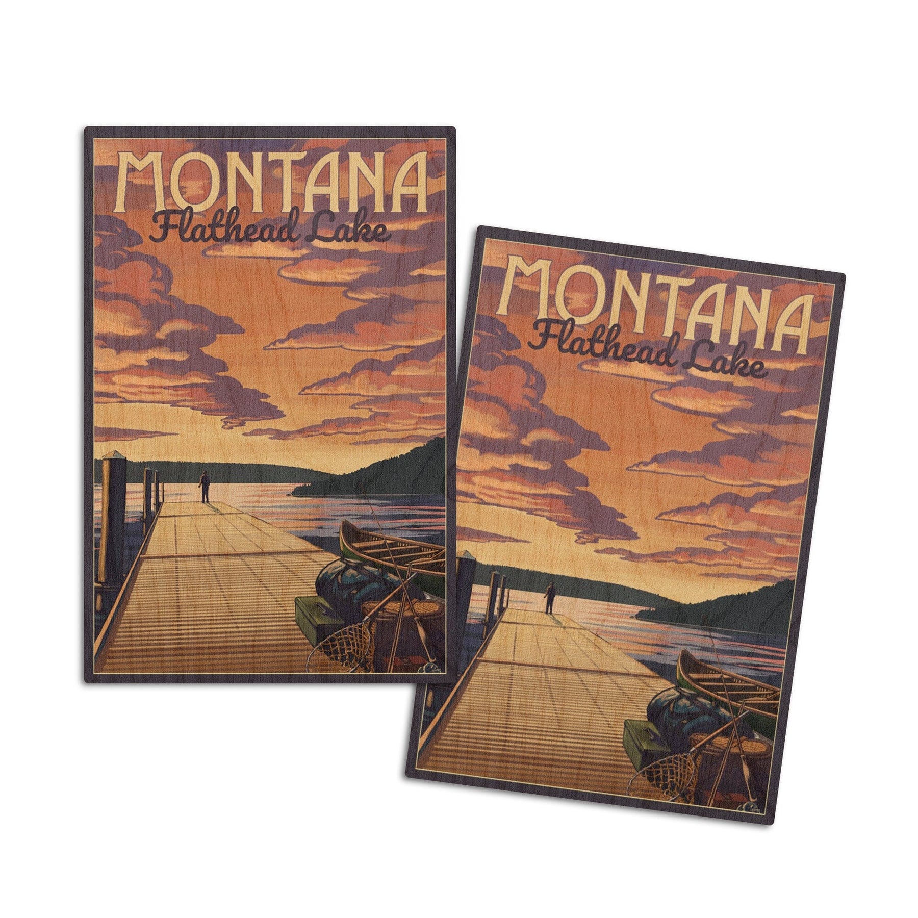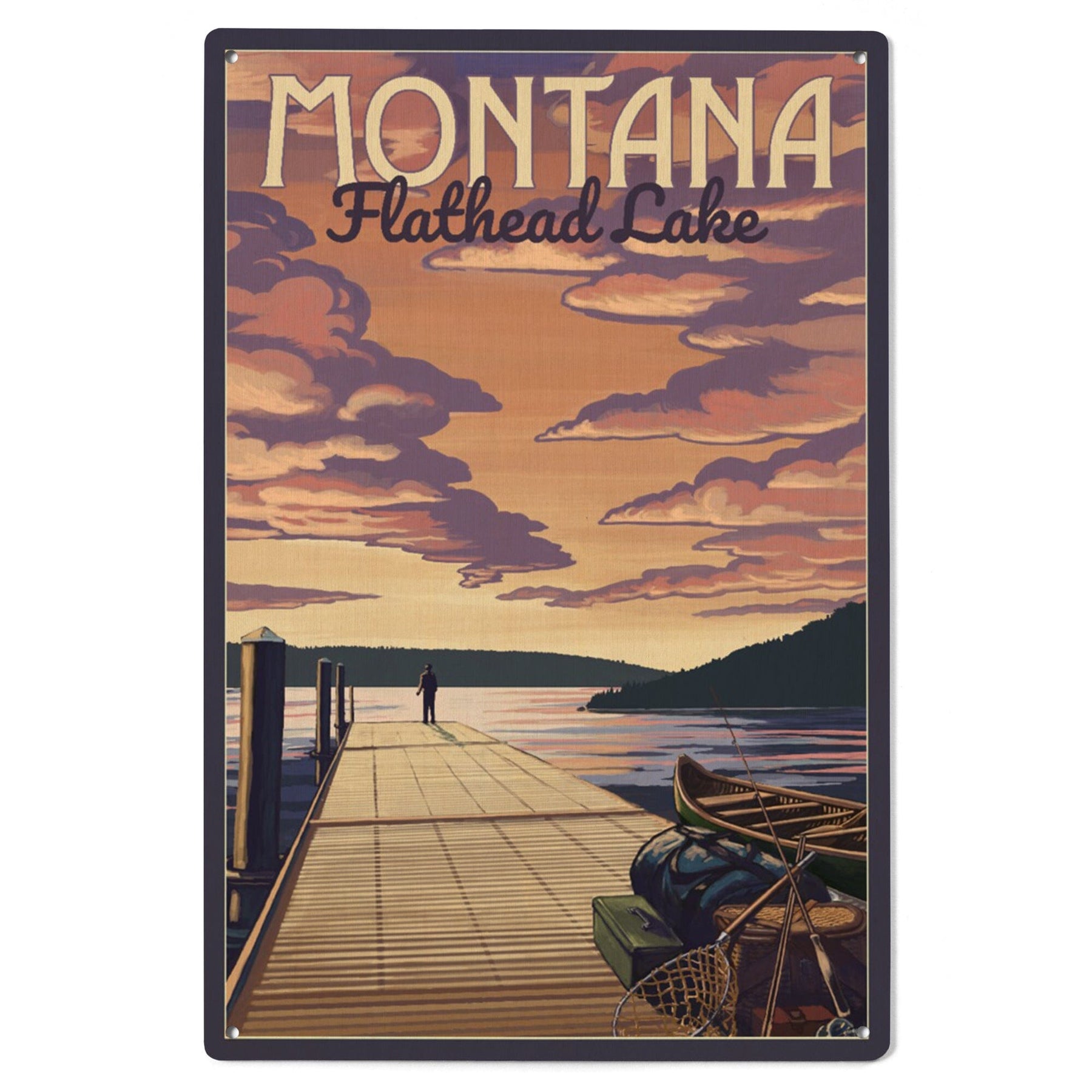 Flathead Lake, Montana, Dock & Lake Scene, Lantern Press Artwork, Wood Signs and Postcards - Lantern Press