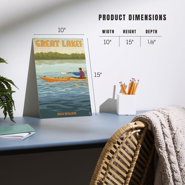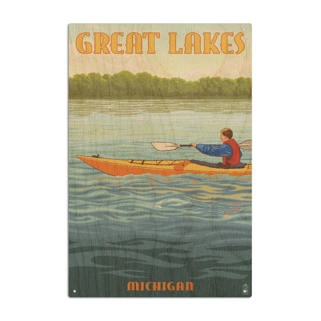 Great Lakes, Michigan, Kayak Scene, Lantern Press Artwork, Wood Signs and Postcards