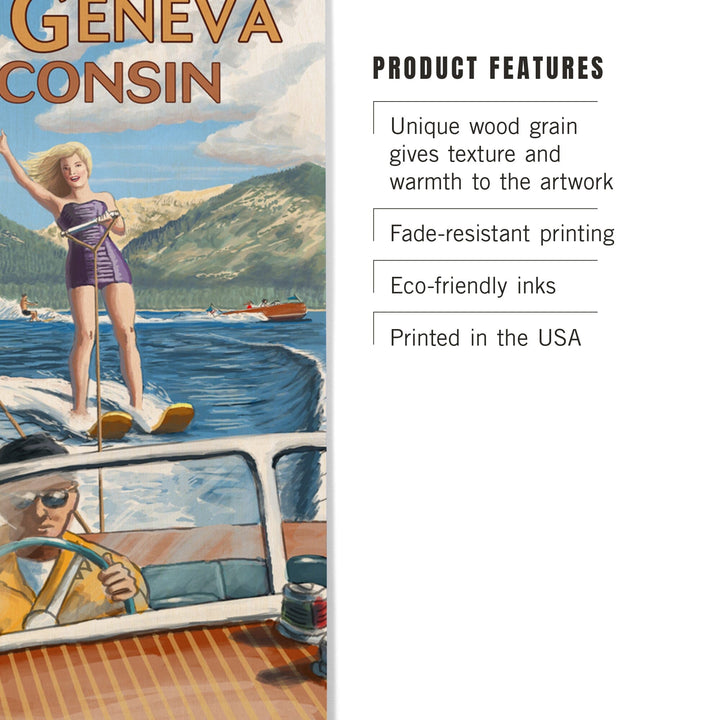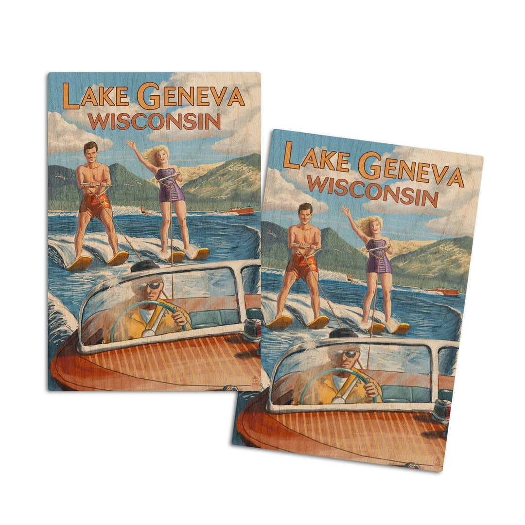 Lake Geneva, Wisconsin, Water Skiing Scene, Lantern Press Artwork, Wood Signs and Postcards