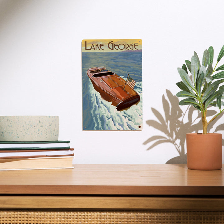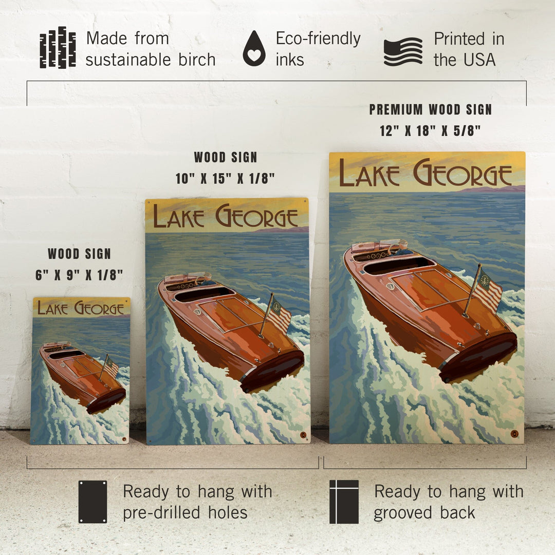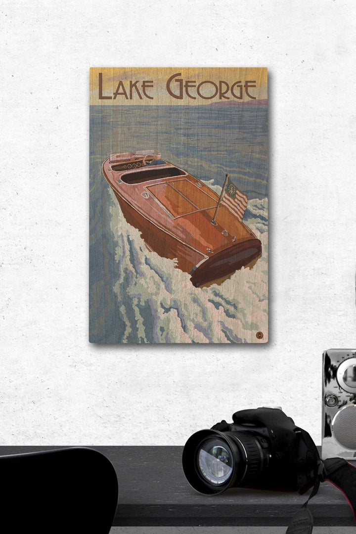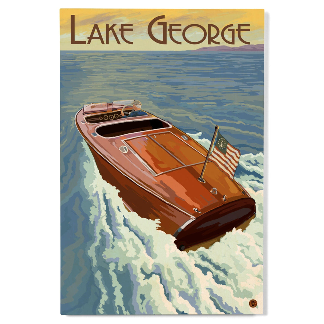 Lake George, New York, Wooden Boat on Lake, Lantern Press Artwork, Wood Signs and Postcards
