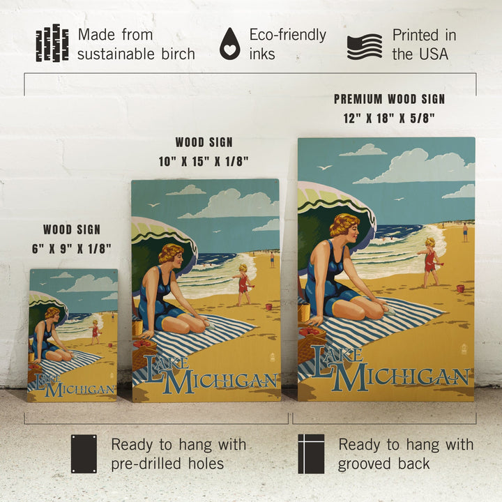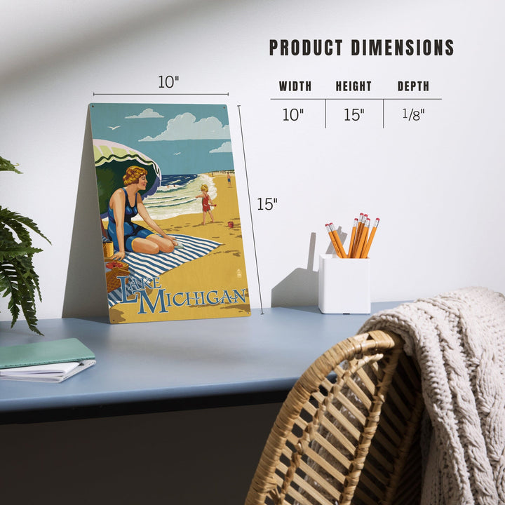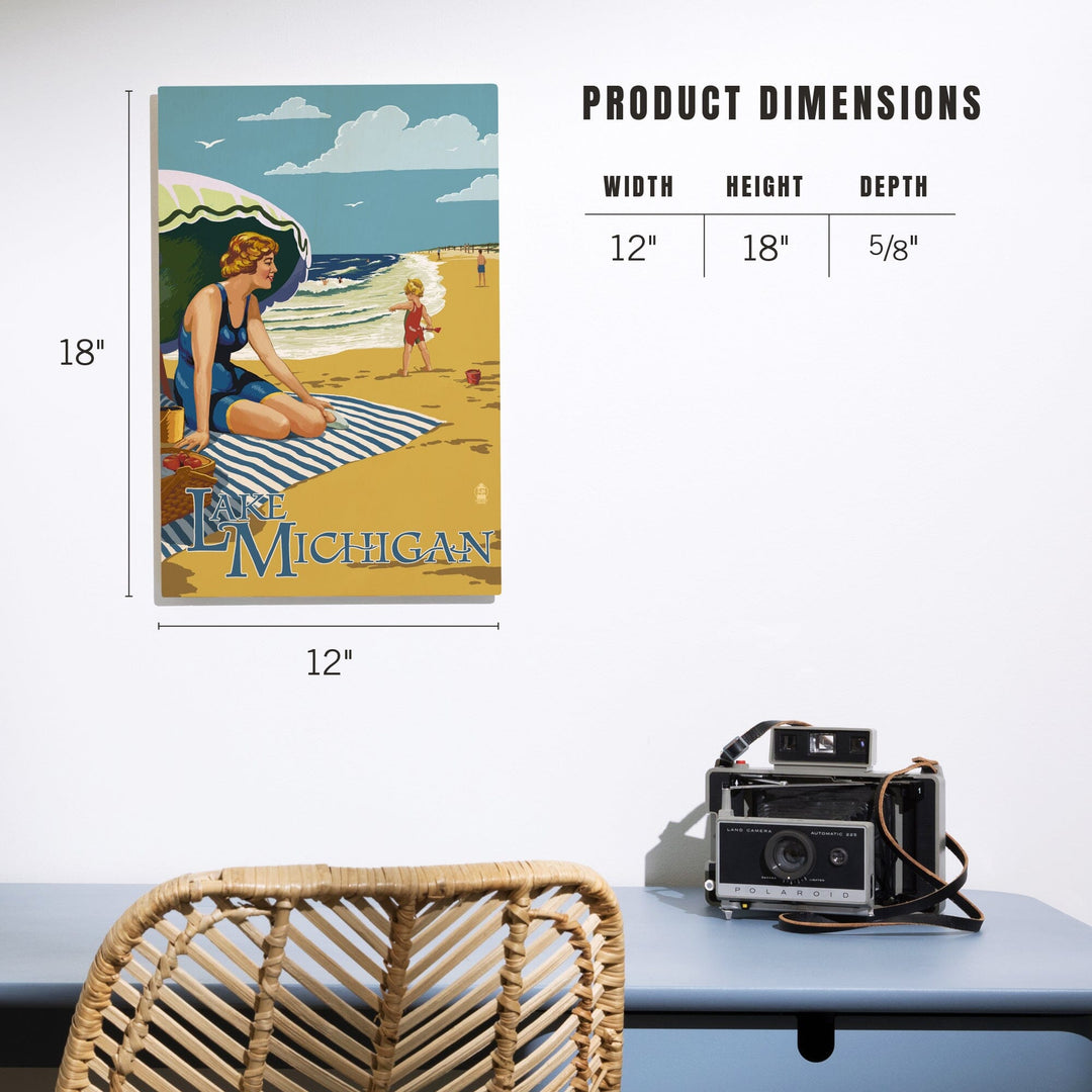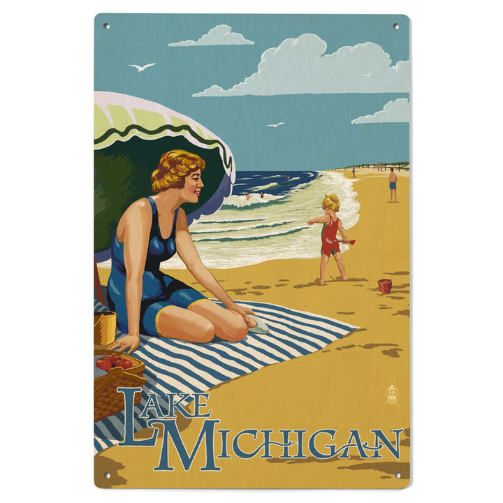Lake Michigan, Beach Scene, Lantern Press Artwork, Wood Signs and Postcards - Lantern Press