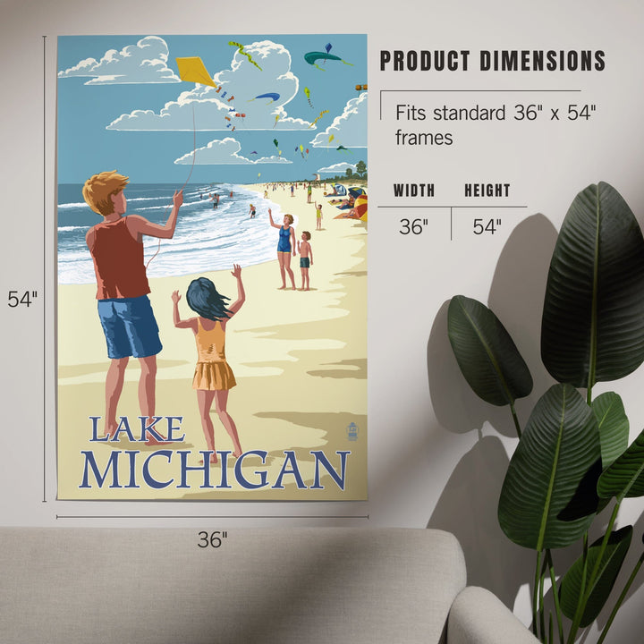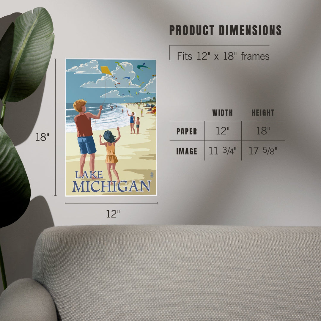 Lake Michigan, Children Flying Kites, Art & Giclee Prints - Lantern Press