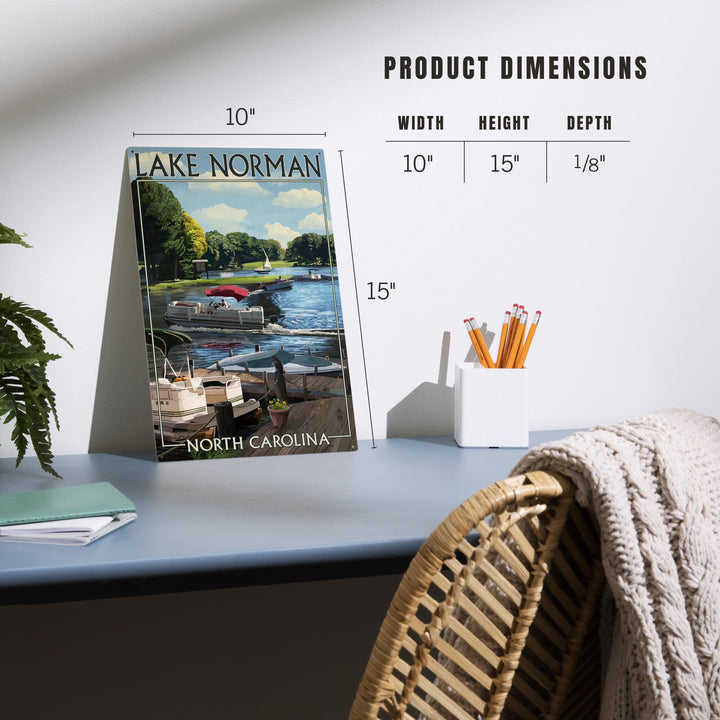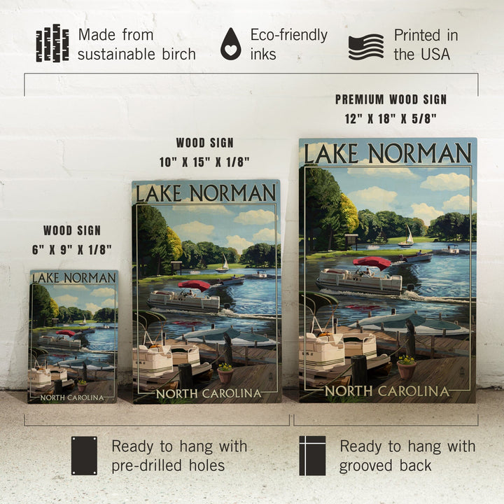Lake Norman, North Carolina, Pontoon Boats, Lantern Press Artwork, Wood Signs and Postcards