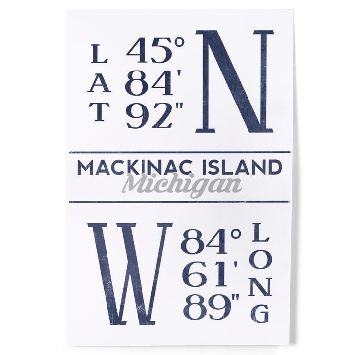 Mackinac Island, Michigan, Latitude and Longitude (Blue), Art & Giclee Prints - Lantern Press