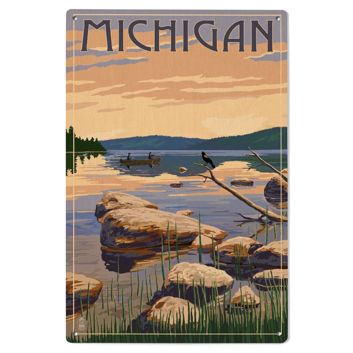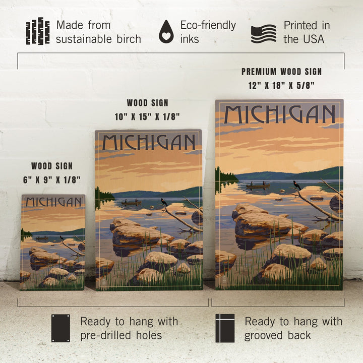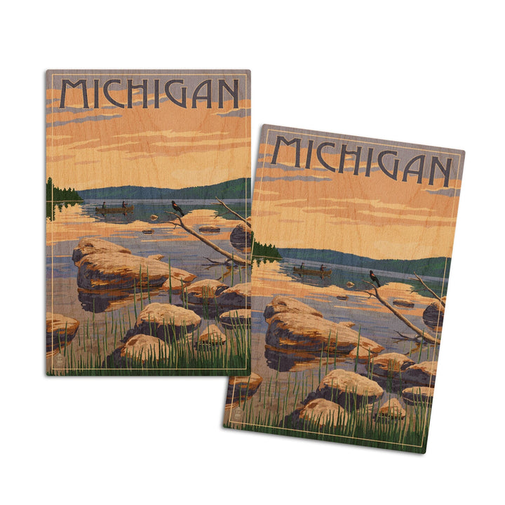 Michigan, Lake Sunrise Scene, Lantern Press Artwork, Wood Signs and Postcards - Lantern Press
