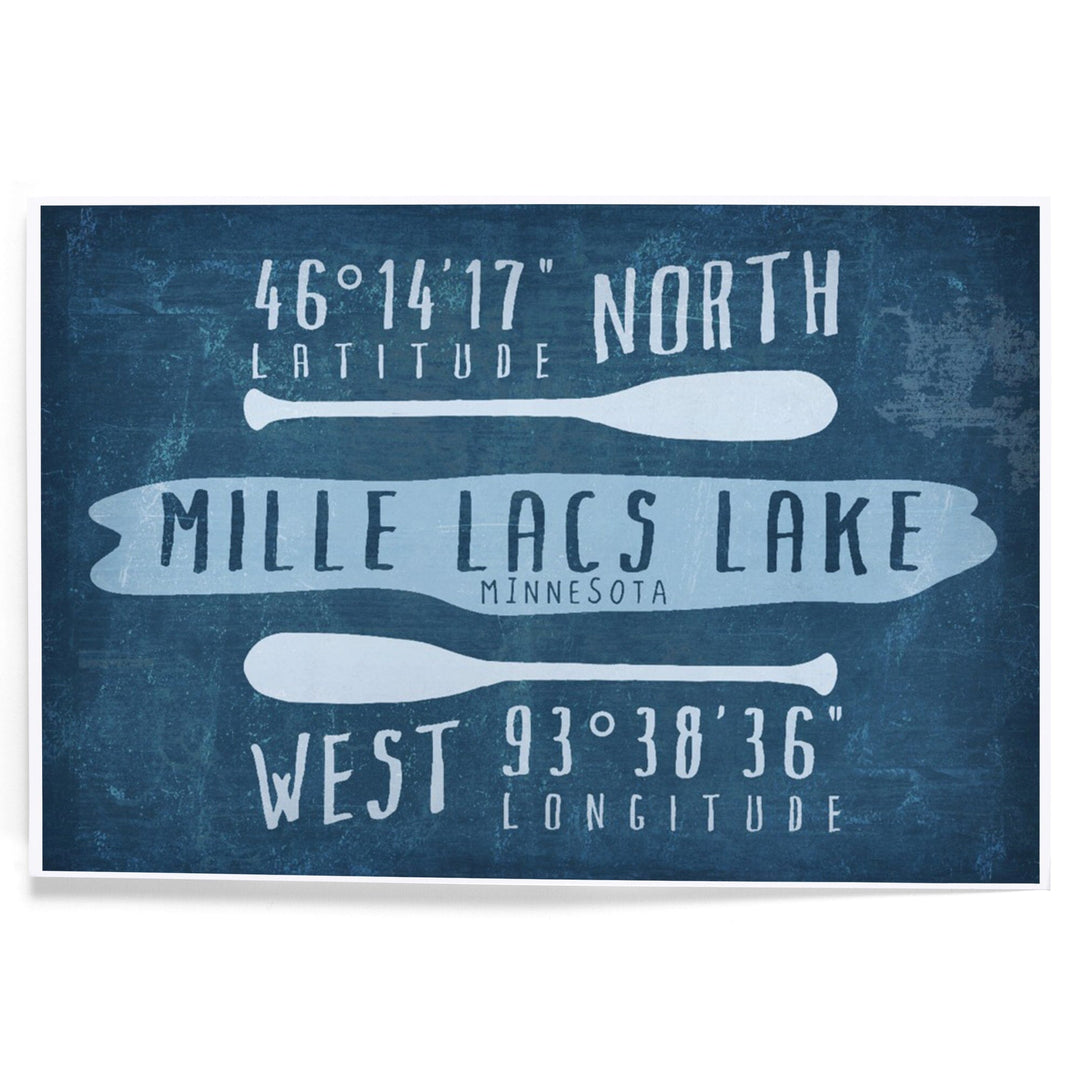 Mille Lacs Lake, Minnesota, Lake Essentials, Latitude and Longitude, Art & Giclee Prints - Lantern Press