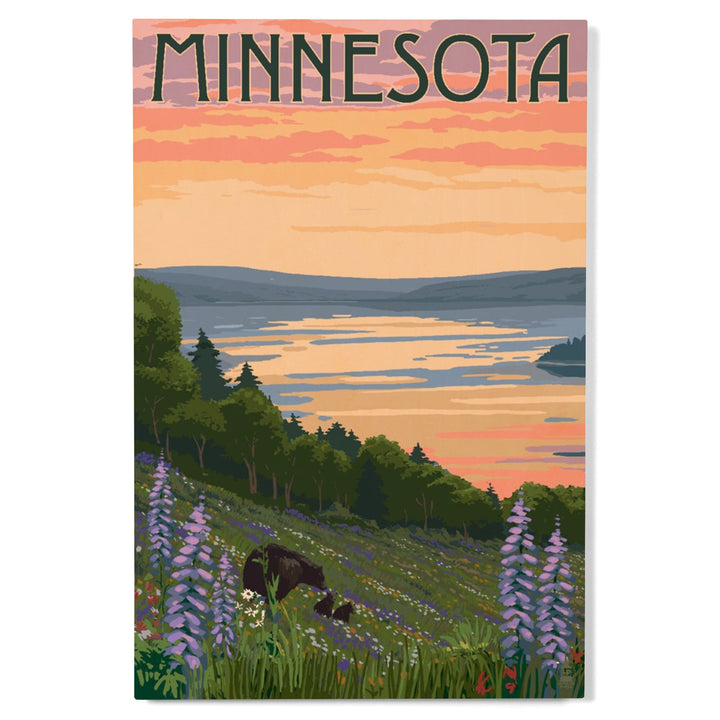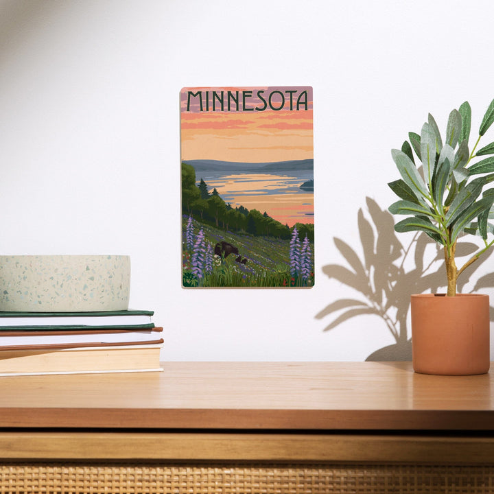 Minnesota, Lake & Bear Family, Lantern Press Artwork, Wood Signs and Postcards