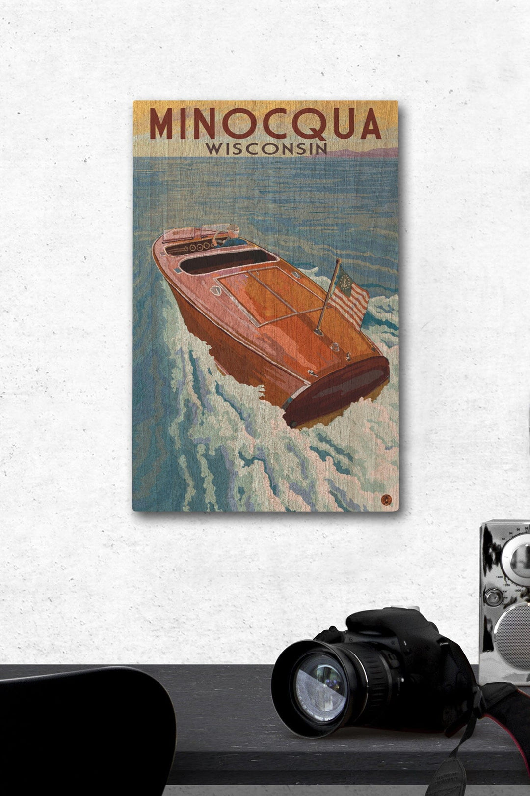 Minocqua, Wisconsin, Wooden Boat on Lake, Lantern Press Artwork, Wood Signs and Postcards - Lantern Press
