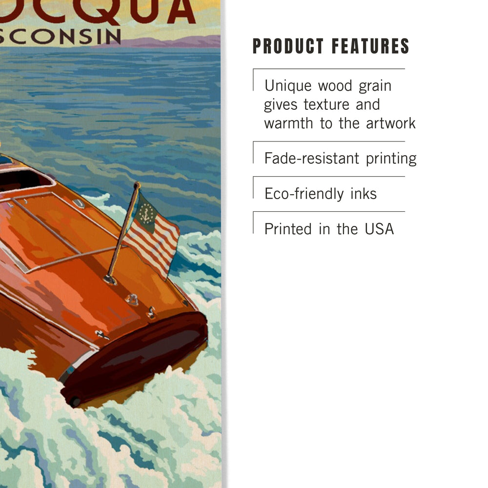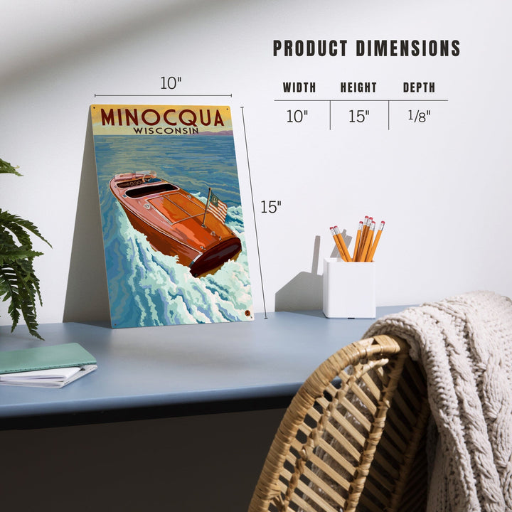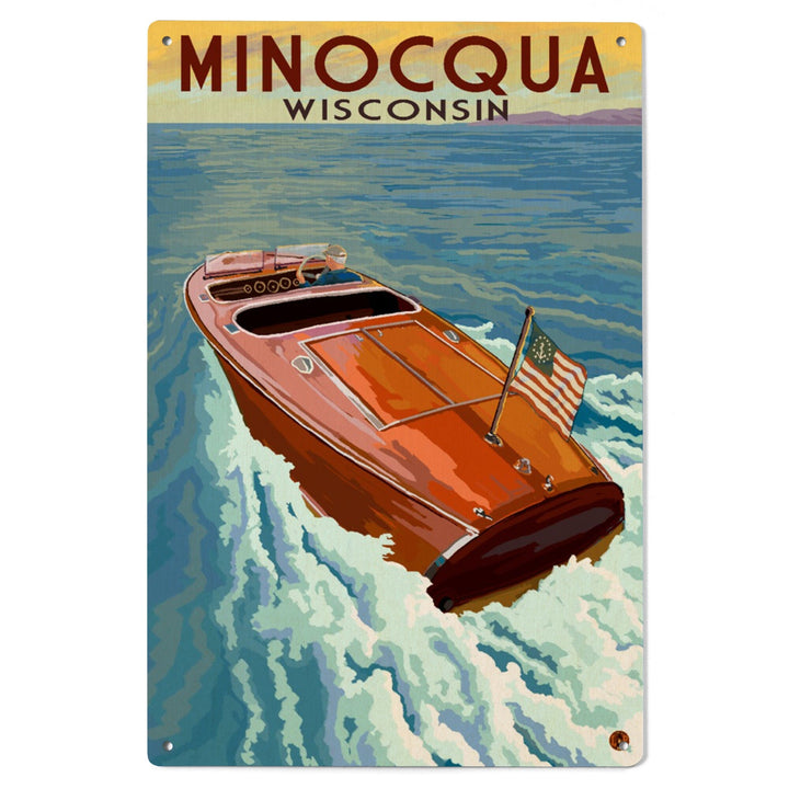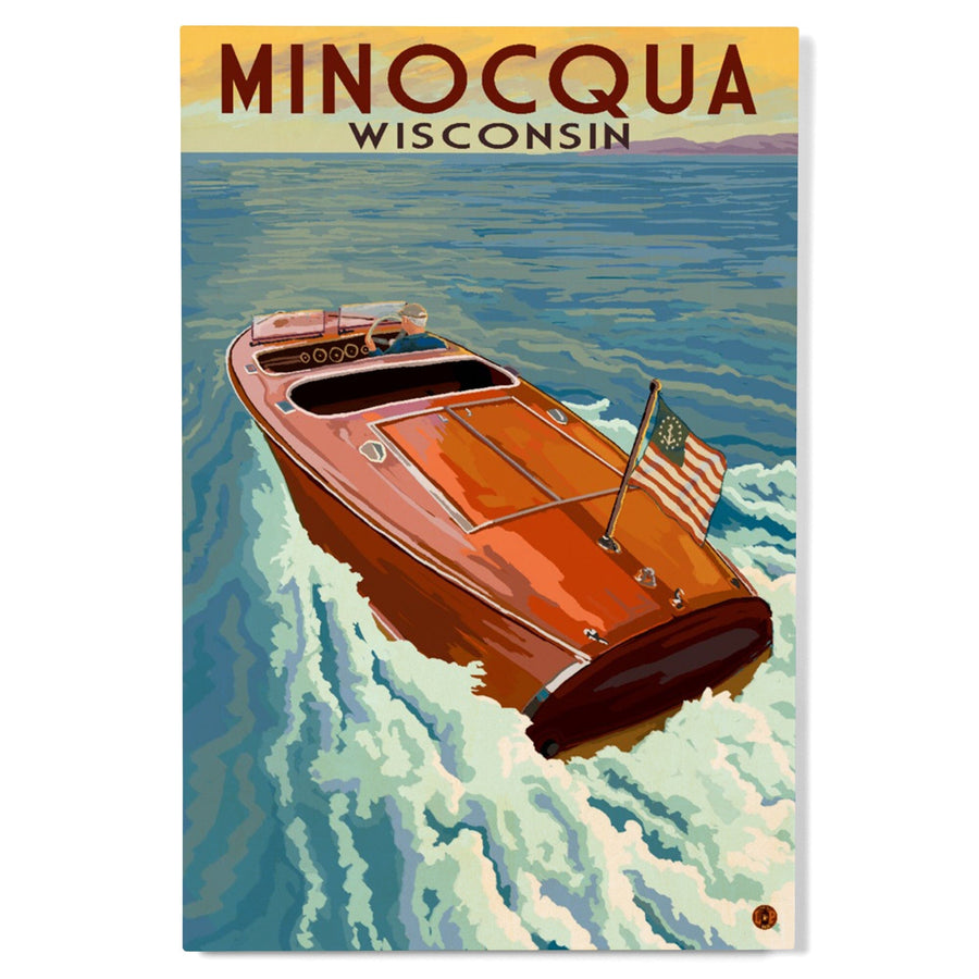 Minocqua, Wisconsin, Wooden Boat on Lake, Lantern Press Artwork, Wood Signs and Postcards