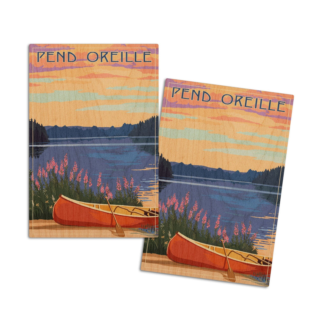 Pend Oreille, Idaho, Canoe & Lake, Lantern Press Artwork, Wood Signs and Postcards