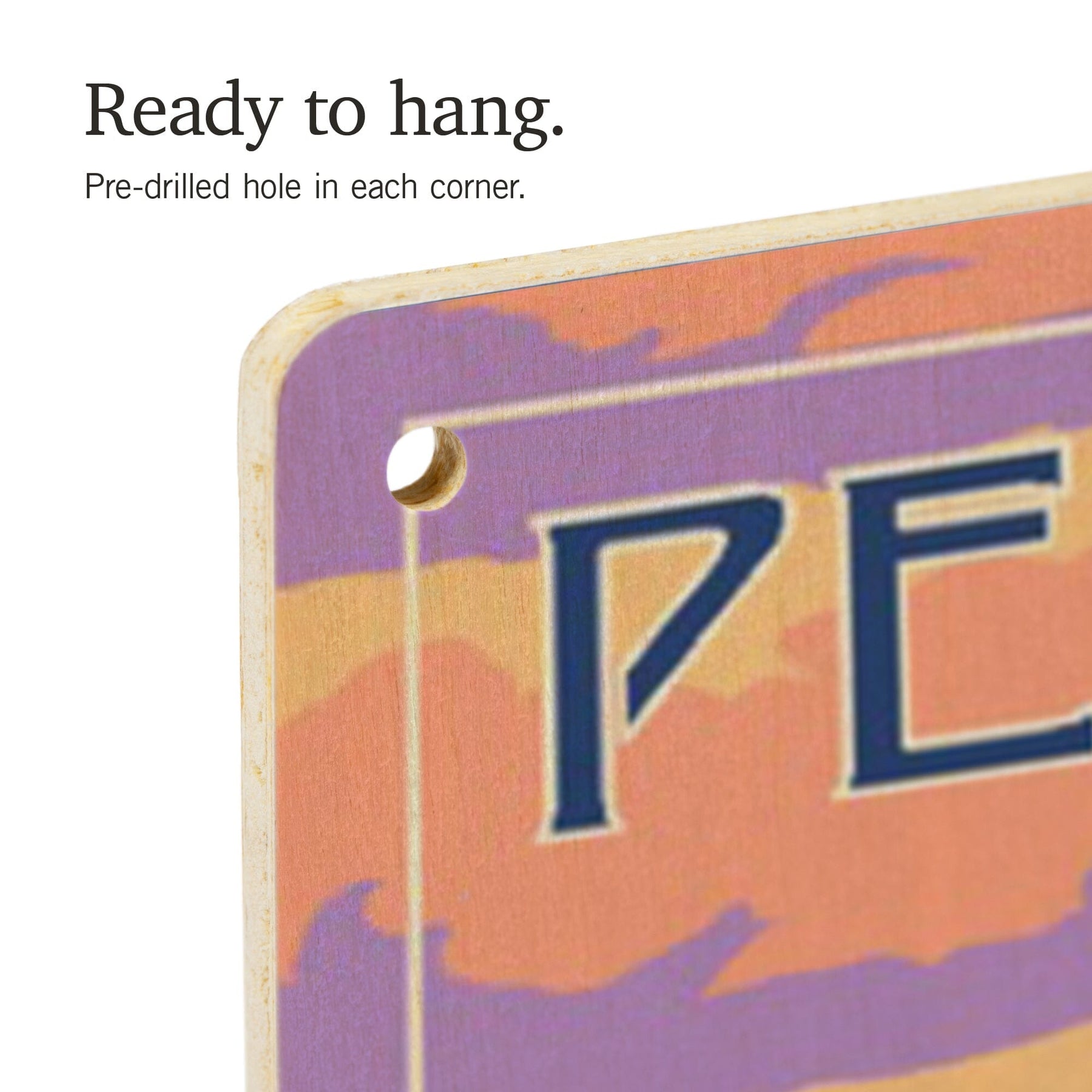• Hole in each corner, ready to hang