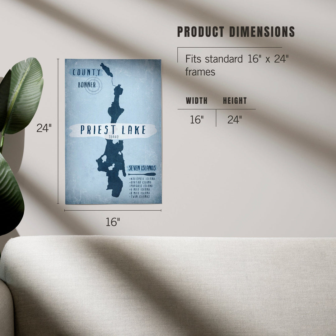 Priest Lake, Idaho, Lake Essentials, Shape, Acreage and County, Art & Giclee Prints