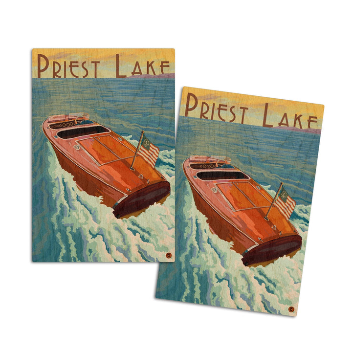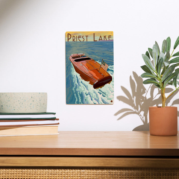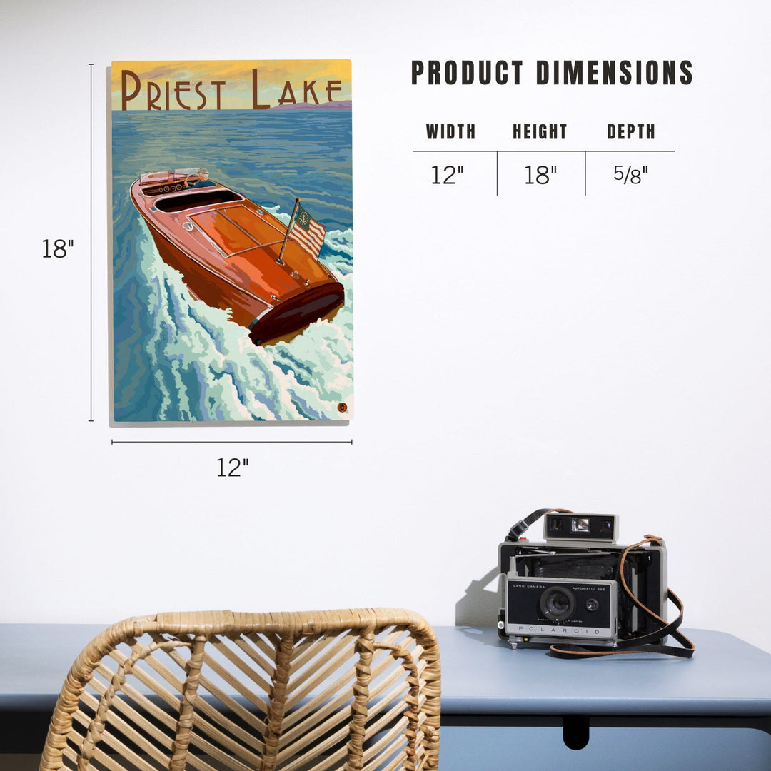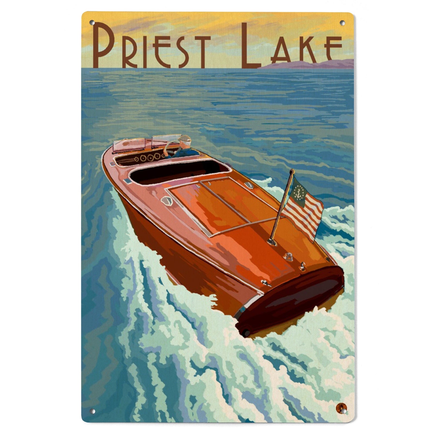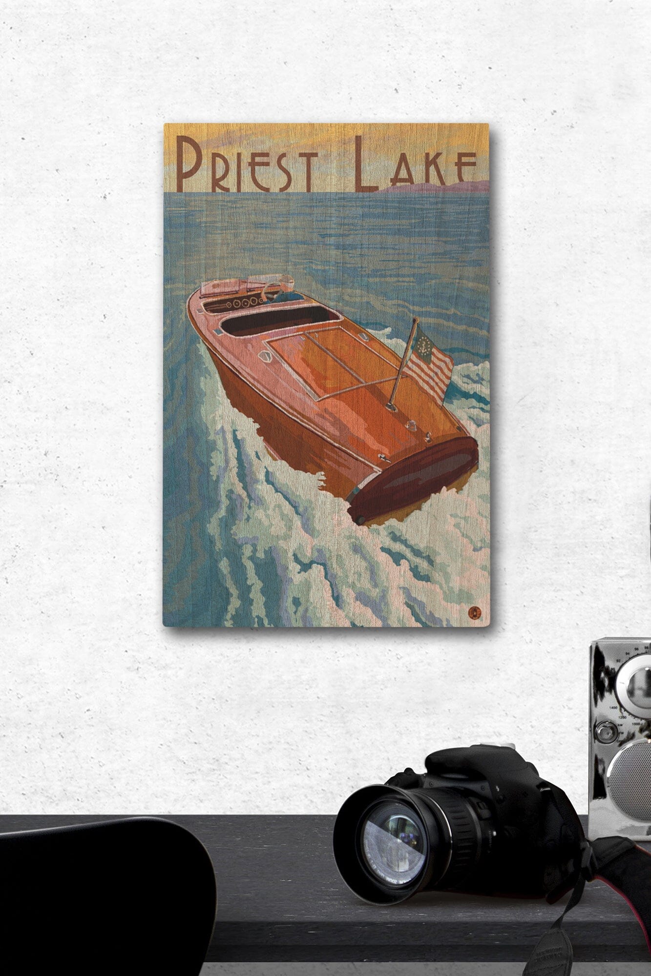 Priest Lake, Idaho, Wooden Boat, Lantern Press Artwork, Wood Signs and Postcards