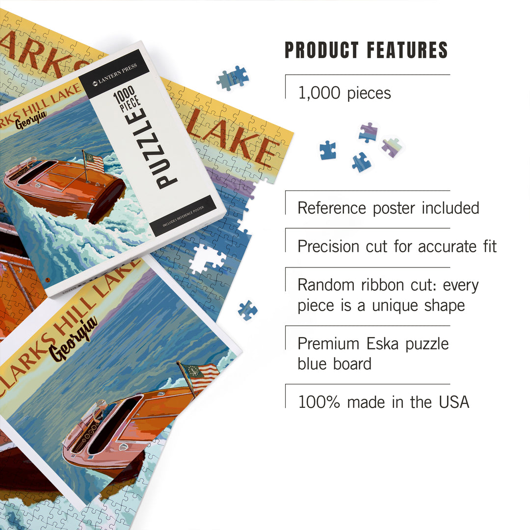 Clarks Hill Lake, Georgia, Wooden Boat Scene, Jigsaw Puzzle Puzzle Lantern Press