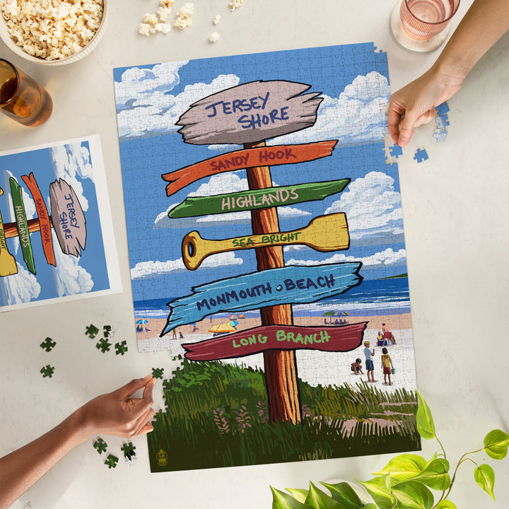 Jersey Shore, Destination Signpost, Jigsaw Puzzle Puzzle Lantern Press