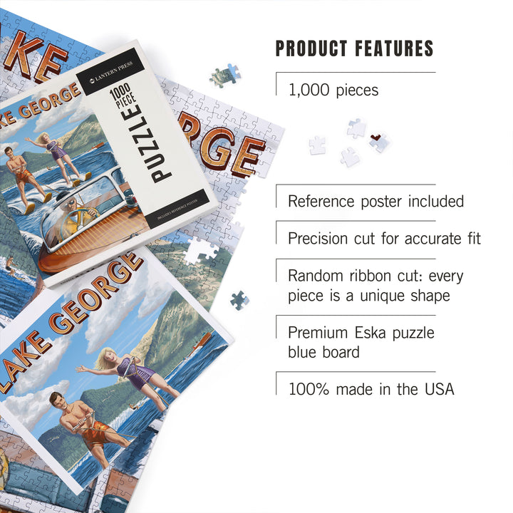 Lake George, New York, Water Skiing Scene, Jigsaw Puzzle Puzzle Lantern Press