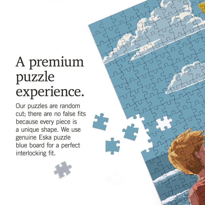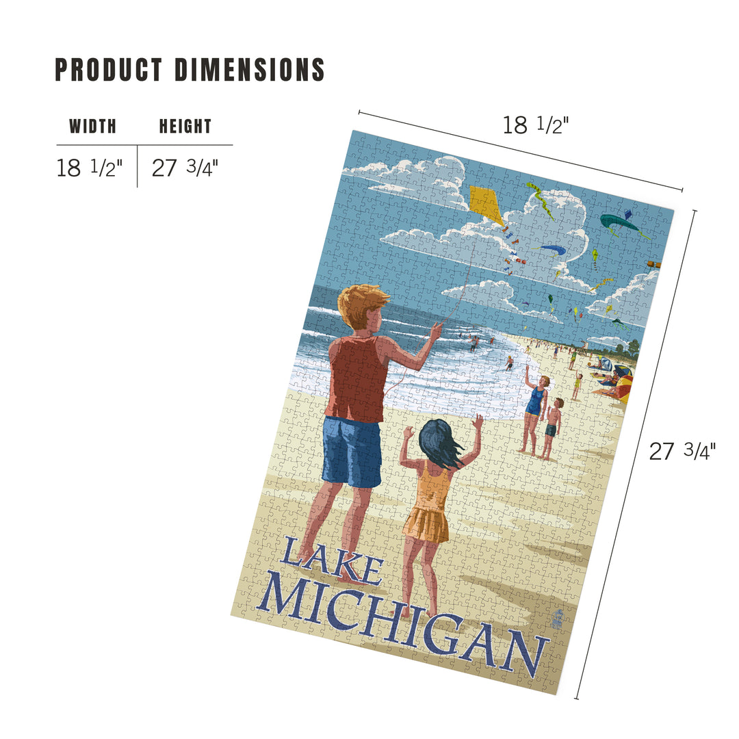 Lake Michigan, Children Flying Kites, Jigsaw Puzzle Puzzle Lantern Press