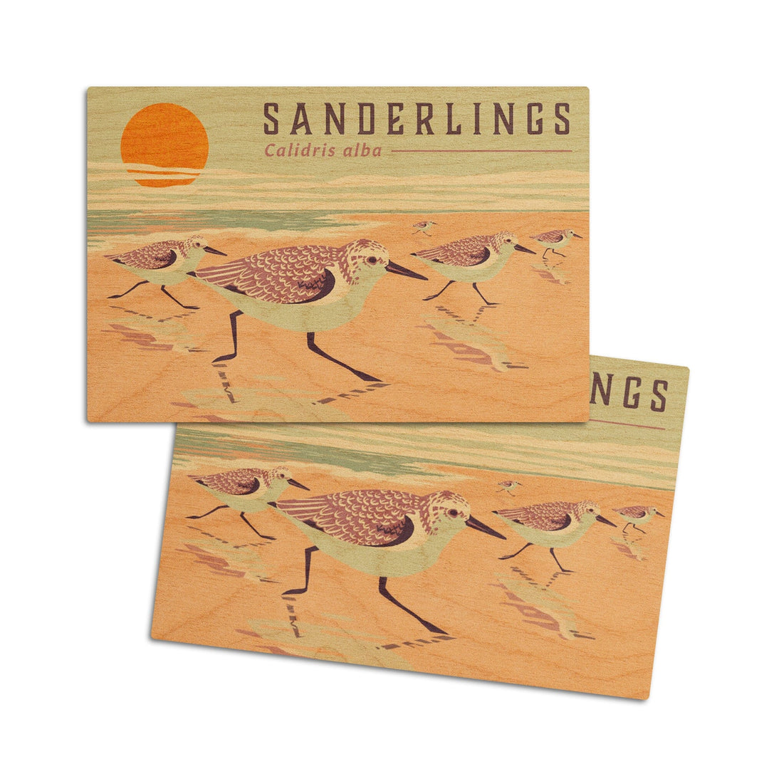 Shorebirds at Sunset Collection, Sanderlings, Birds, Wood Signs and Postcards Wood Lantern Press