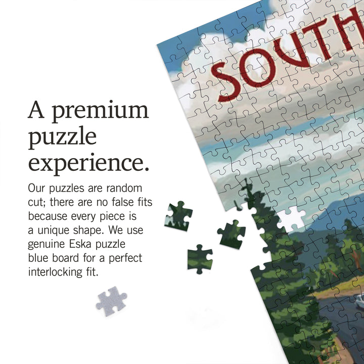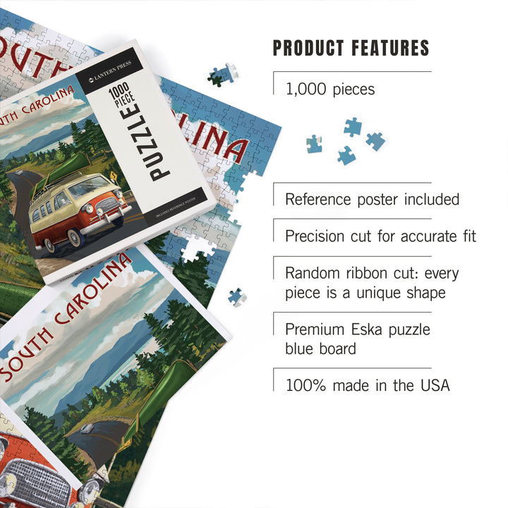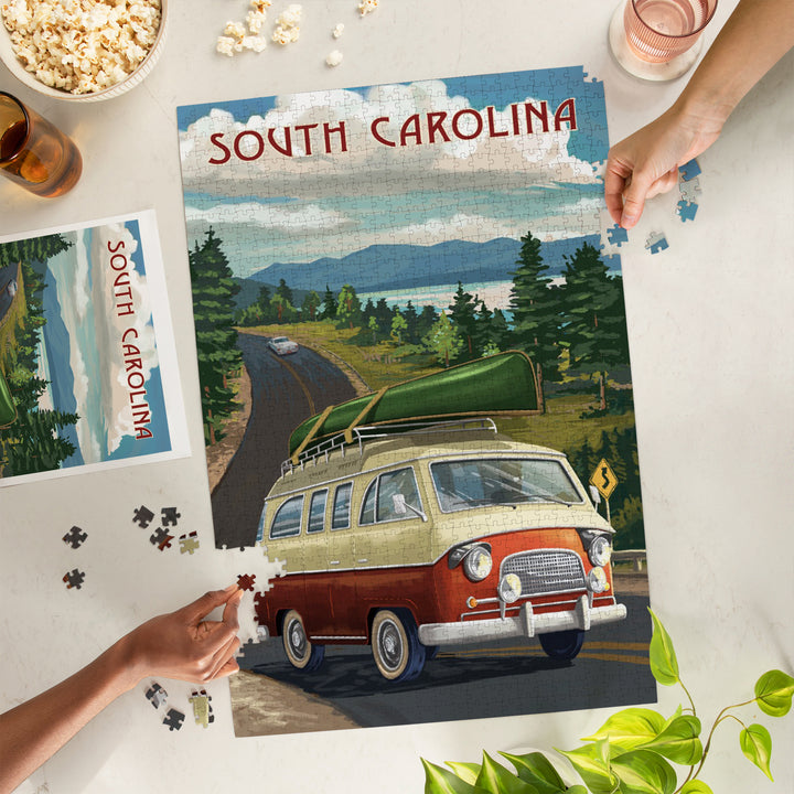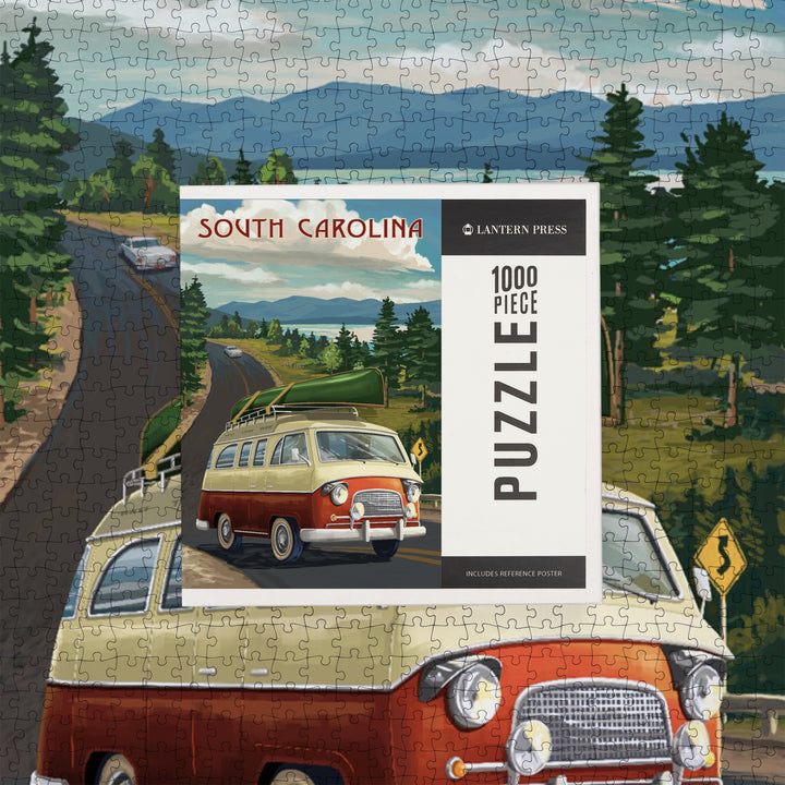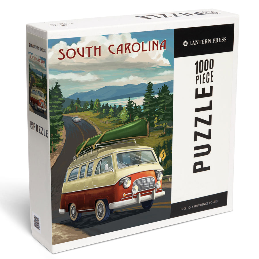 South Carolina, Camper Van and Lake, Jigsaw Puzzle Puzzle Lantern Press