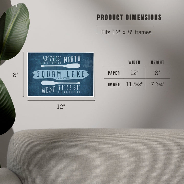 Squam Lake, New Hampshire, Lake Essentials, Latitude and Longitude, Art & Giclee Prints Art Lantern Press